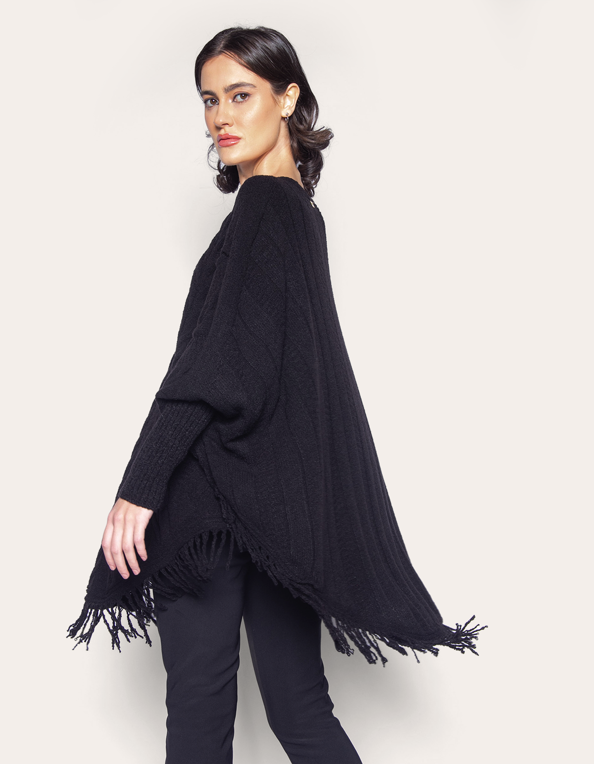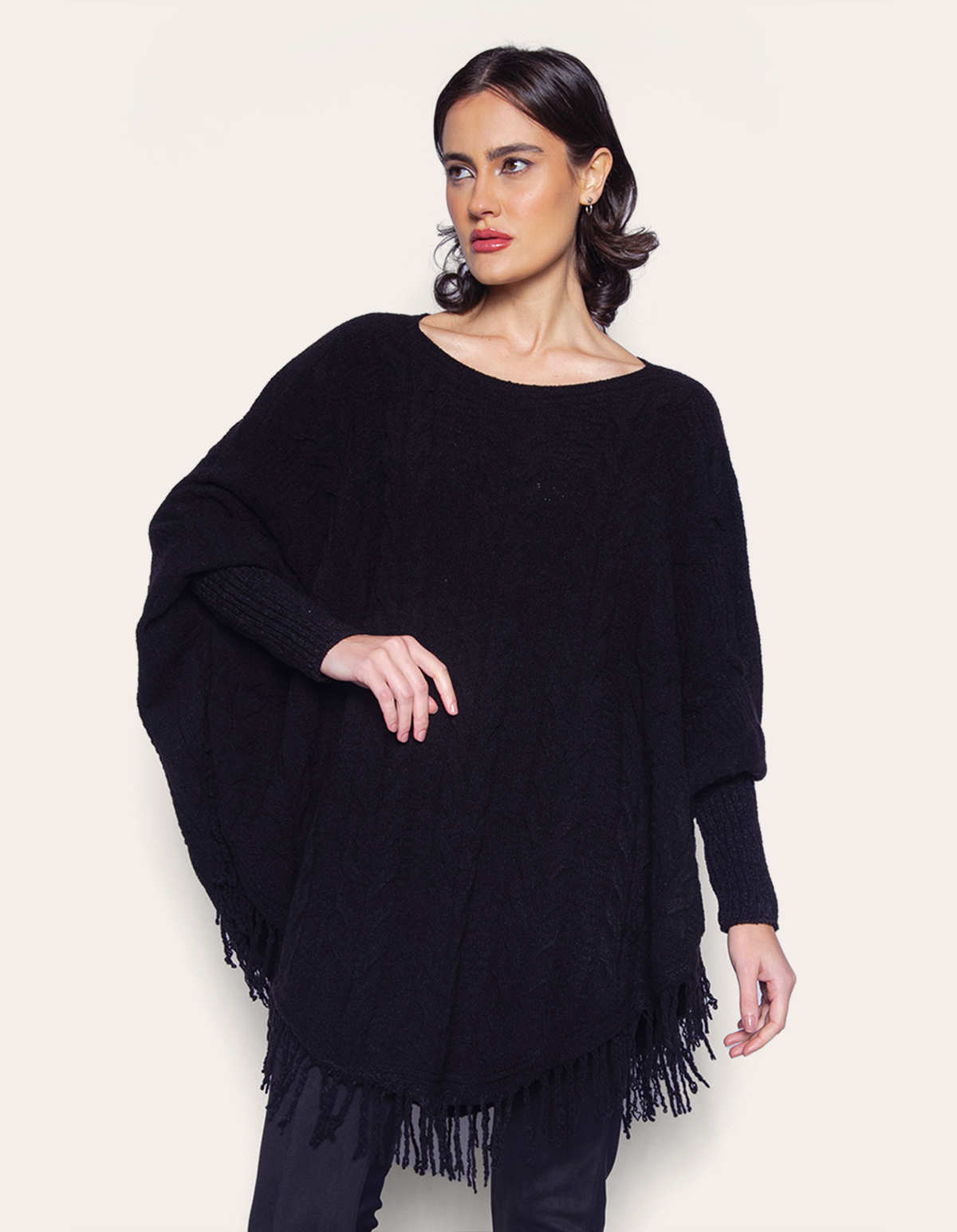 Nosso poncho tricot é sinônimo de estilo atemporal. confeccionado em tricot mousse de toque ultra macio, quentinho e confortável, ele traz uma modelagem ampla e confortável, perfeita para os dias mais frios. a gola canoa e o acabamento canelado nas mangas oferecem um visual sofisticado, enquanto o ponto trançado e a barra com franja dá um toque moderno e feminino.