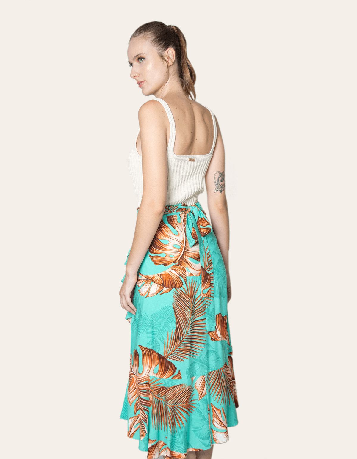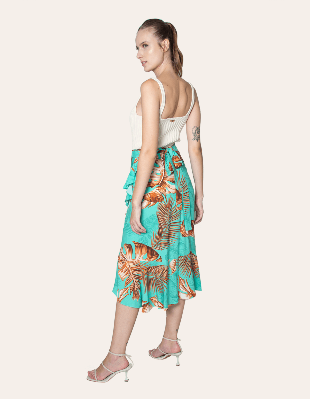 Saia curta transpassada estampada