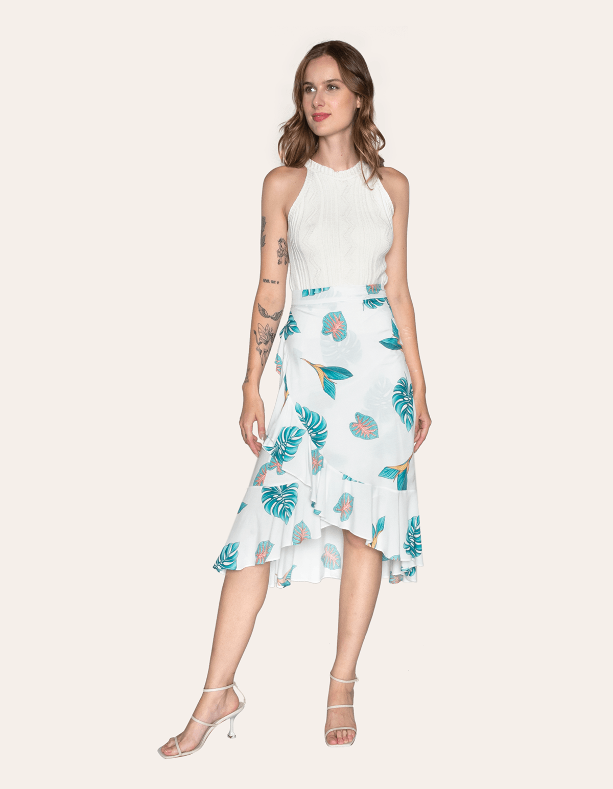 Saia curta transpassada estampada