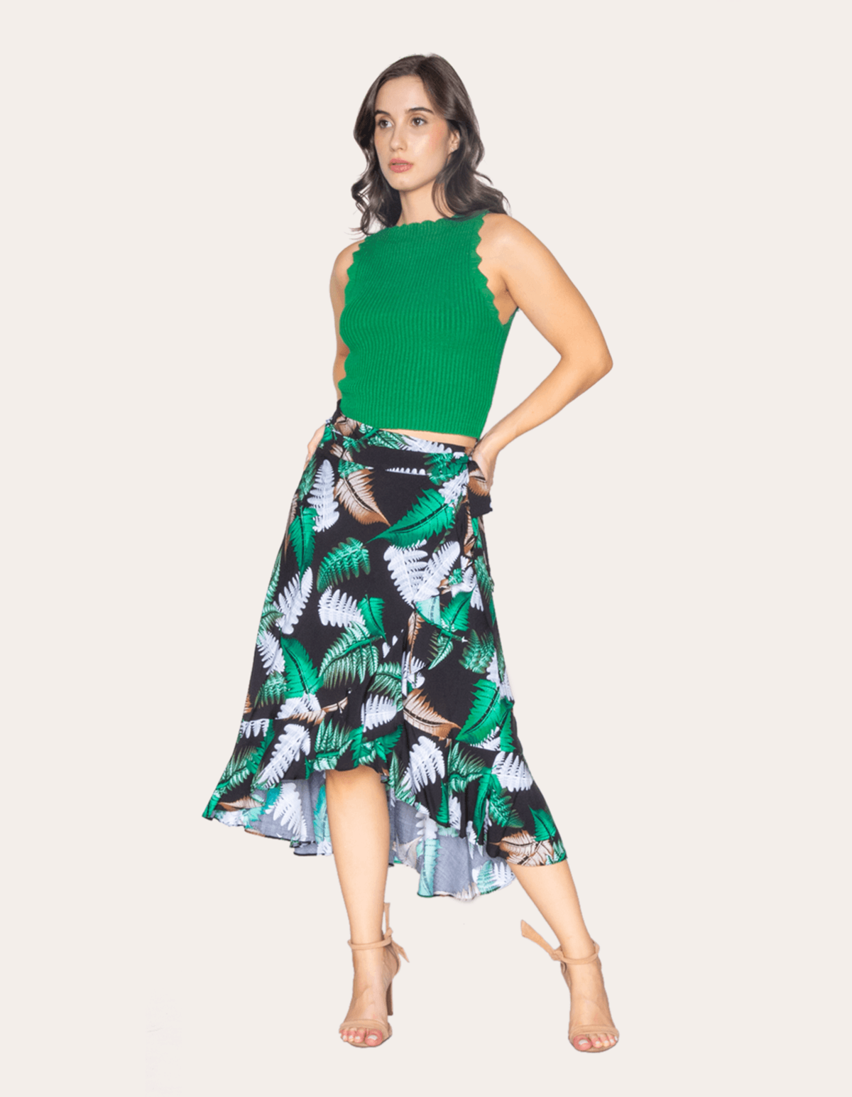 Saia curta transpassada estampada
