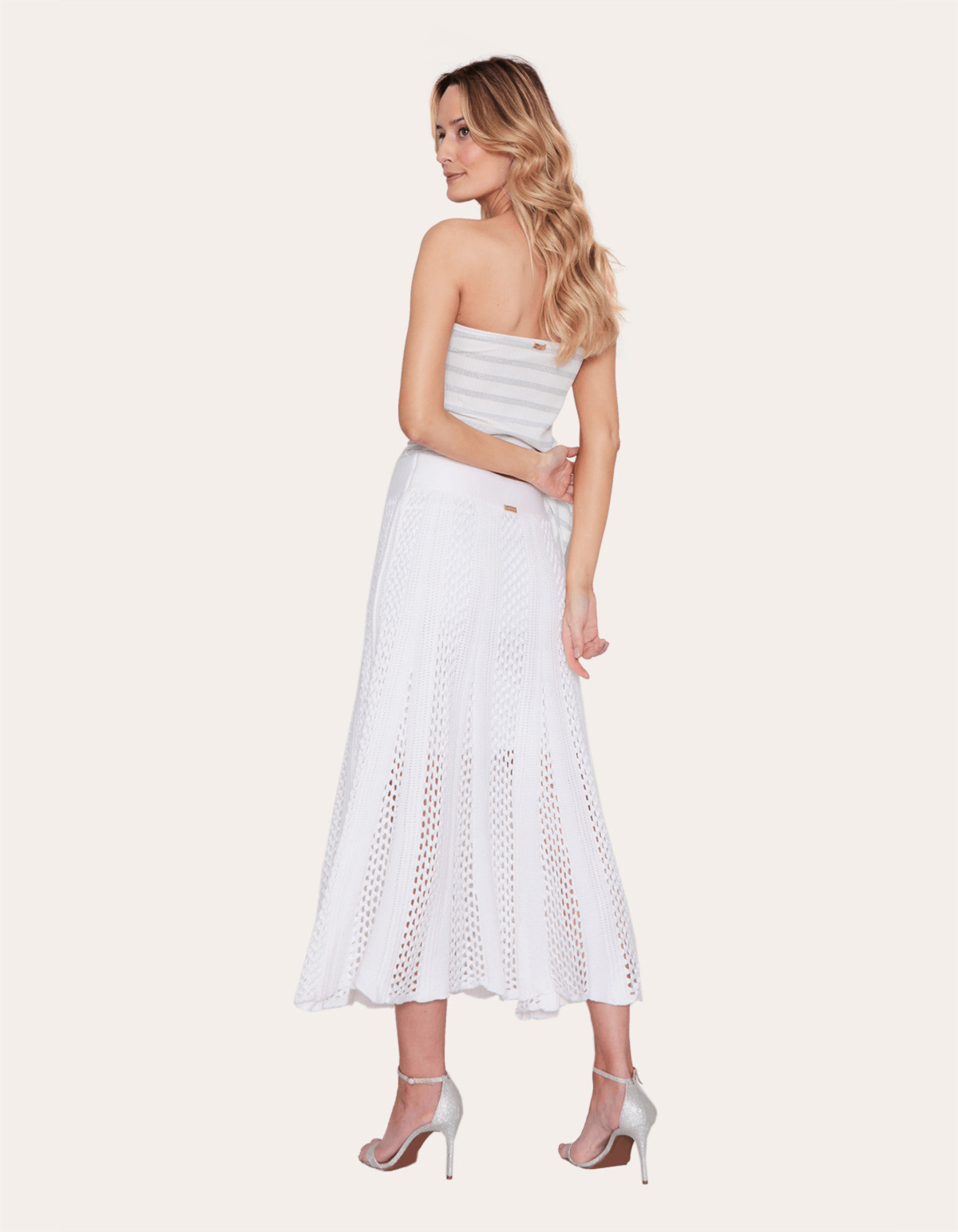 Saia longa confeccionada em tramas mais abertas, o que garante mais frescor e sensualidade a peça, pode ser usada tanto no dia a dia quanto em ocasiões mais sociais, versátil, possui cós com elástico na cintura, e caimento perfeito junto ao corpo.