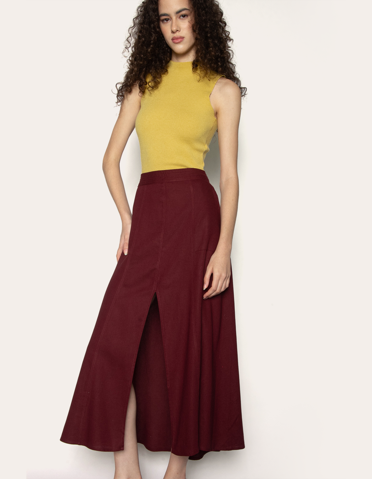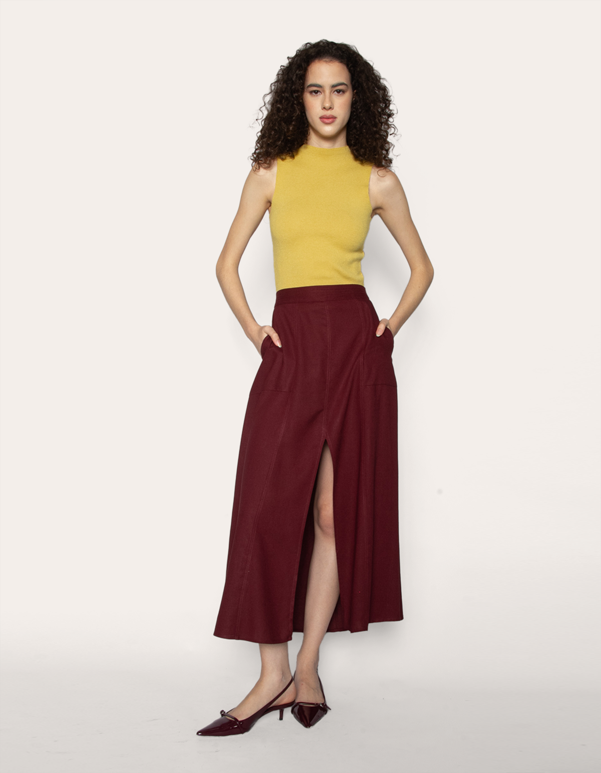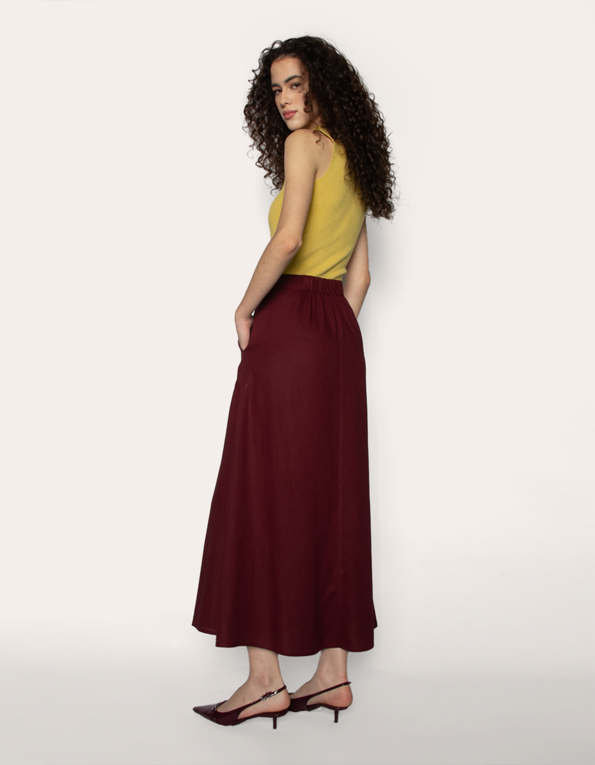 Saia longa com fenda na frente, possui ellástico atrás no cós e fechamento lateral em zíper. uma escolha elegante e sofisticada para diversas ocasiões.