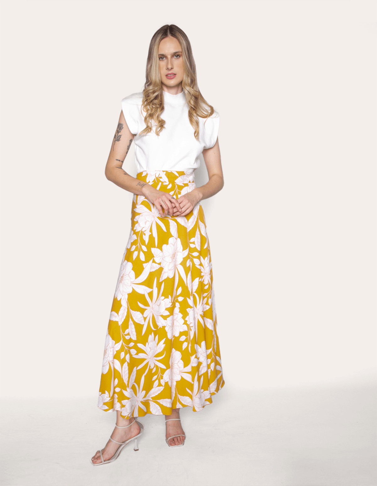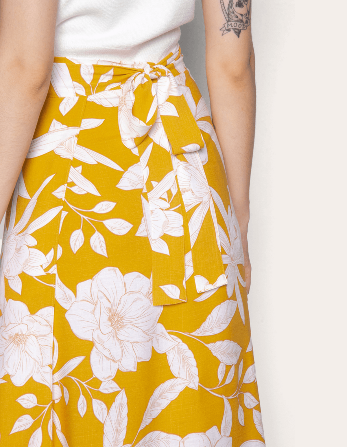 Saia longa transpassada estampada com faixa de amarrar na cintura. esse modelo vai dar vida para qualquer visual leve e descontraído.