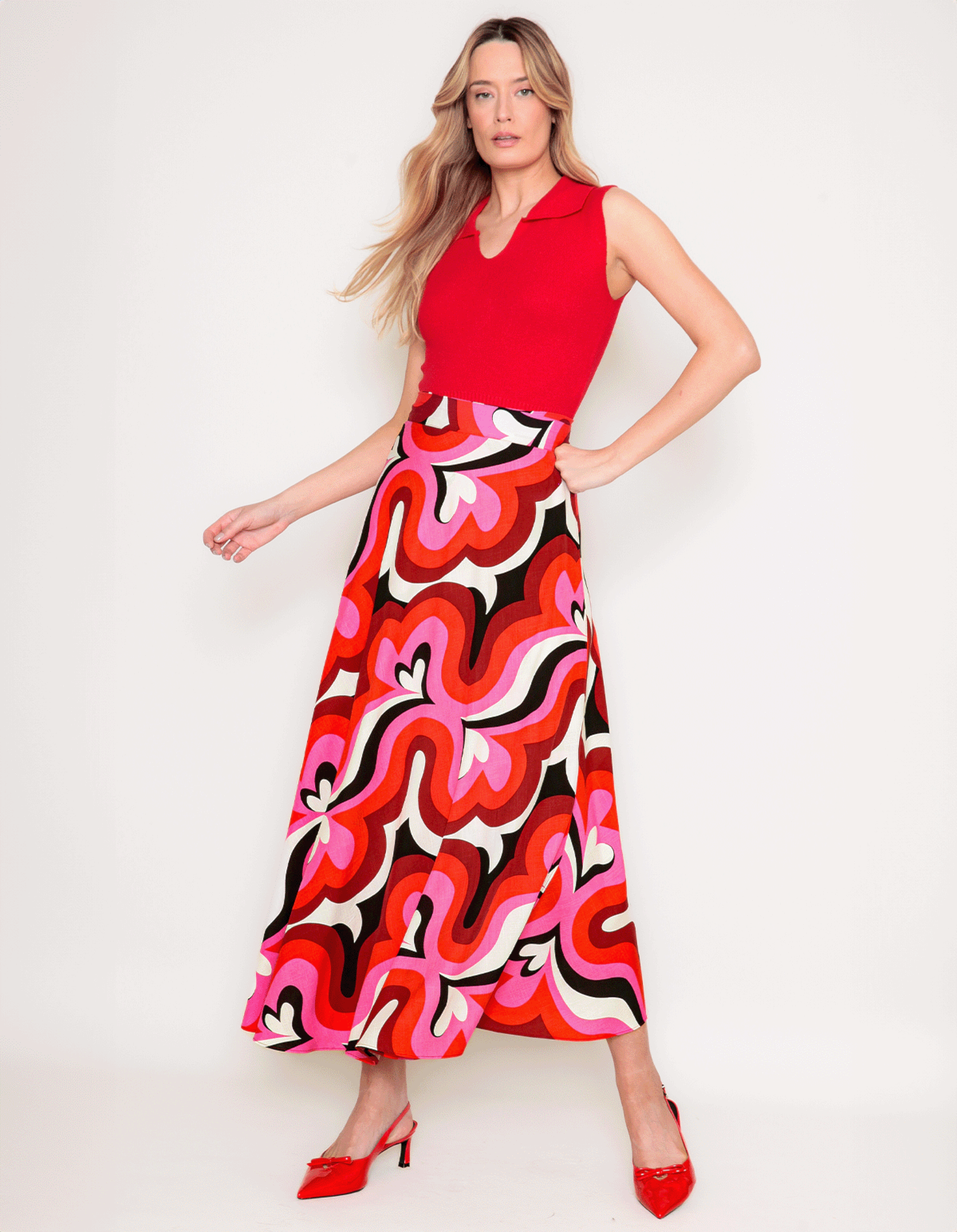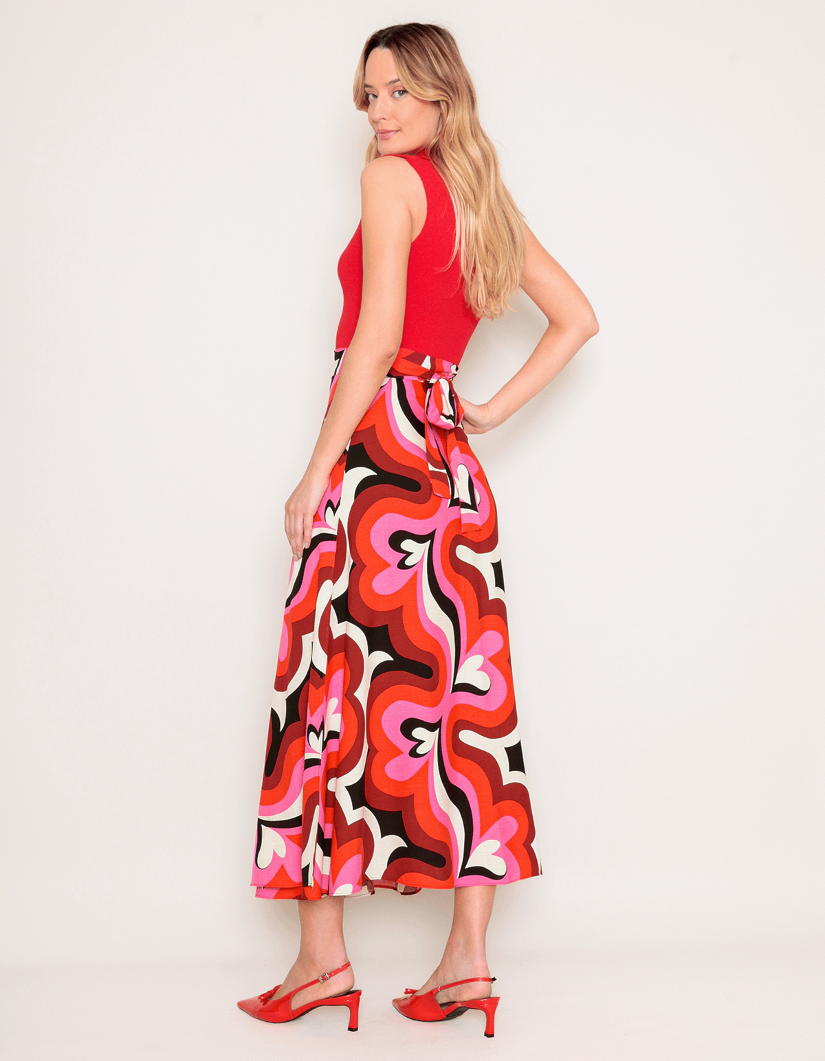Saia longa transpassada estampada com faixa de amarrar na cintura. esse modelo vai dar vida para qualquer visual leve e descontraído.