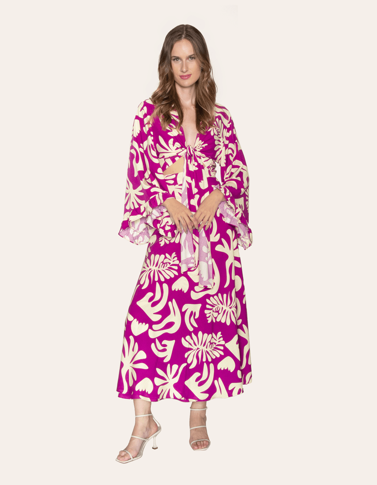 Saia longa transpassada estampada com faixa de amarrar na cintura. esse modelo vai dar vida para qualquer visual leve e descontraído.