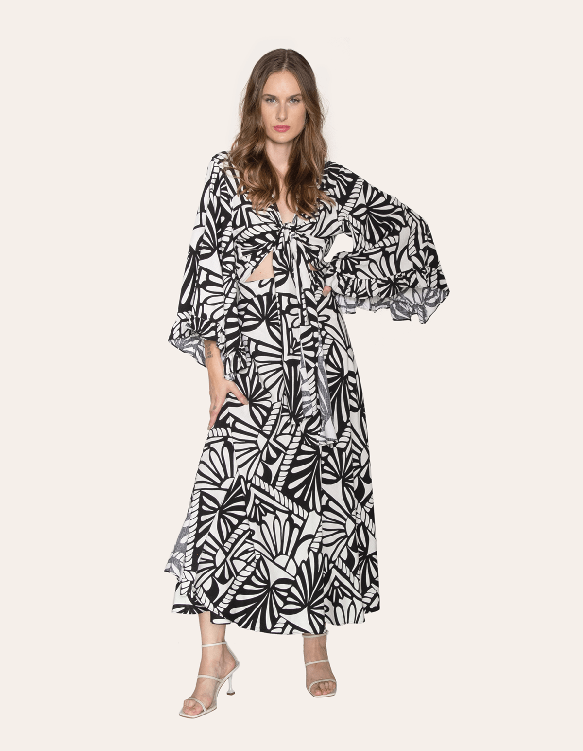 Saia longa transpassada estampada com faixa de amarrar na cintura. esse modelo vai dar vida para qualquer visual leve e descontraído.