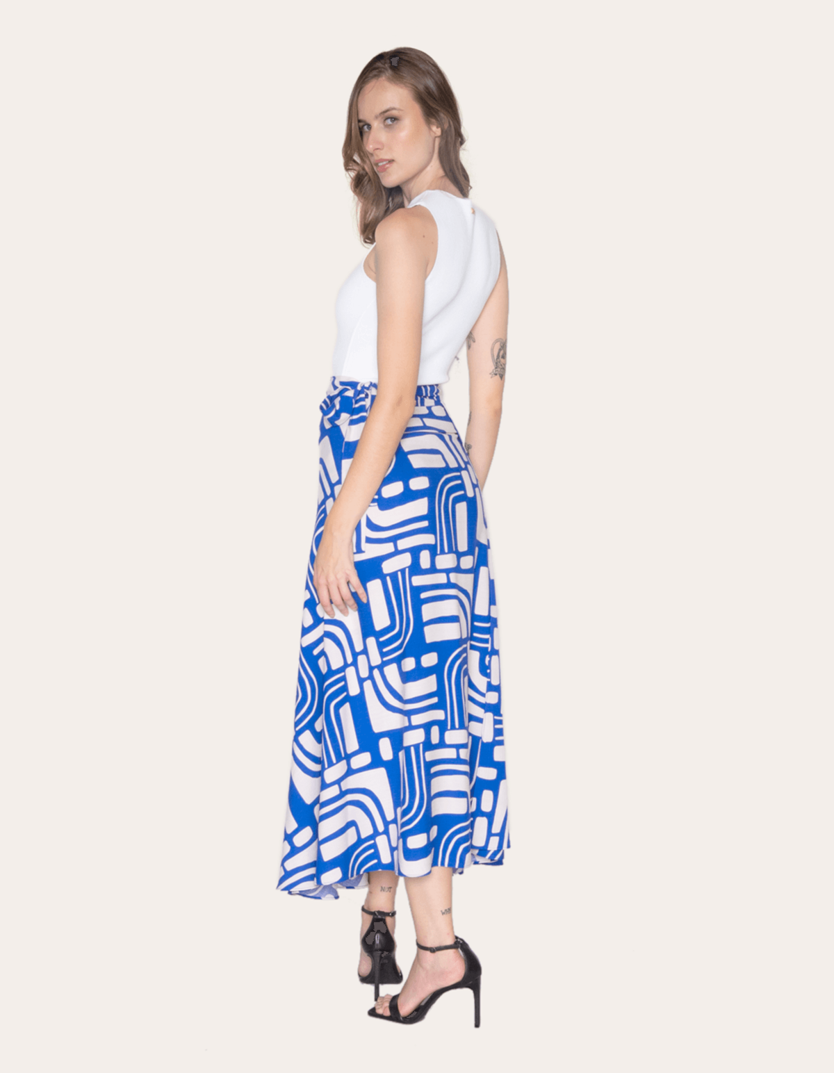 Saia longa transpassada estampada com faixa de amarrar na cintura. esse modelo vai dar vida para qualquer visual leve e descontraído.