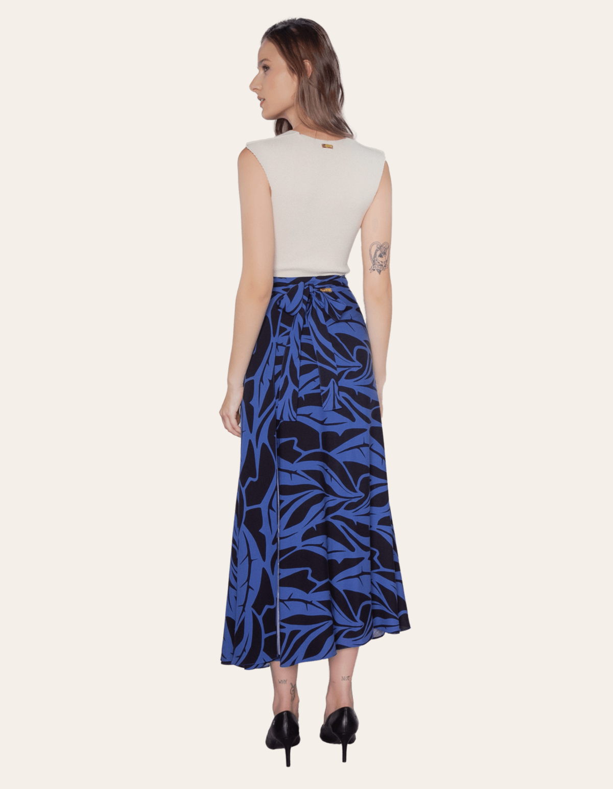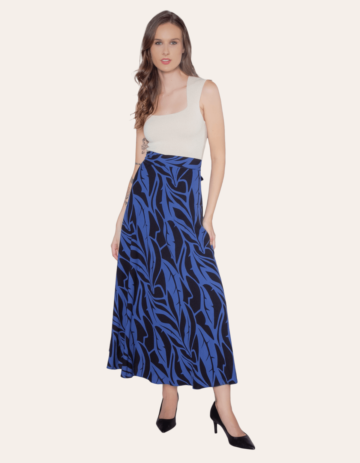 Saia longa transpassada estampada com faixa de amarrar na cintura. esse modelo vai dar vida para qualquer visual leve e descontraído.