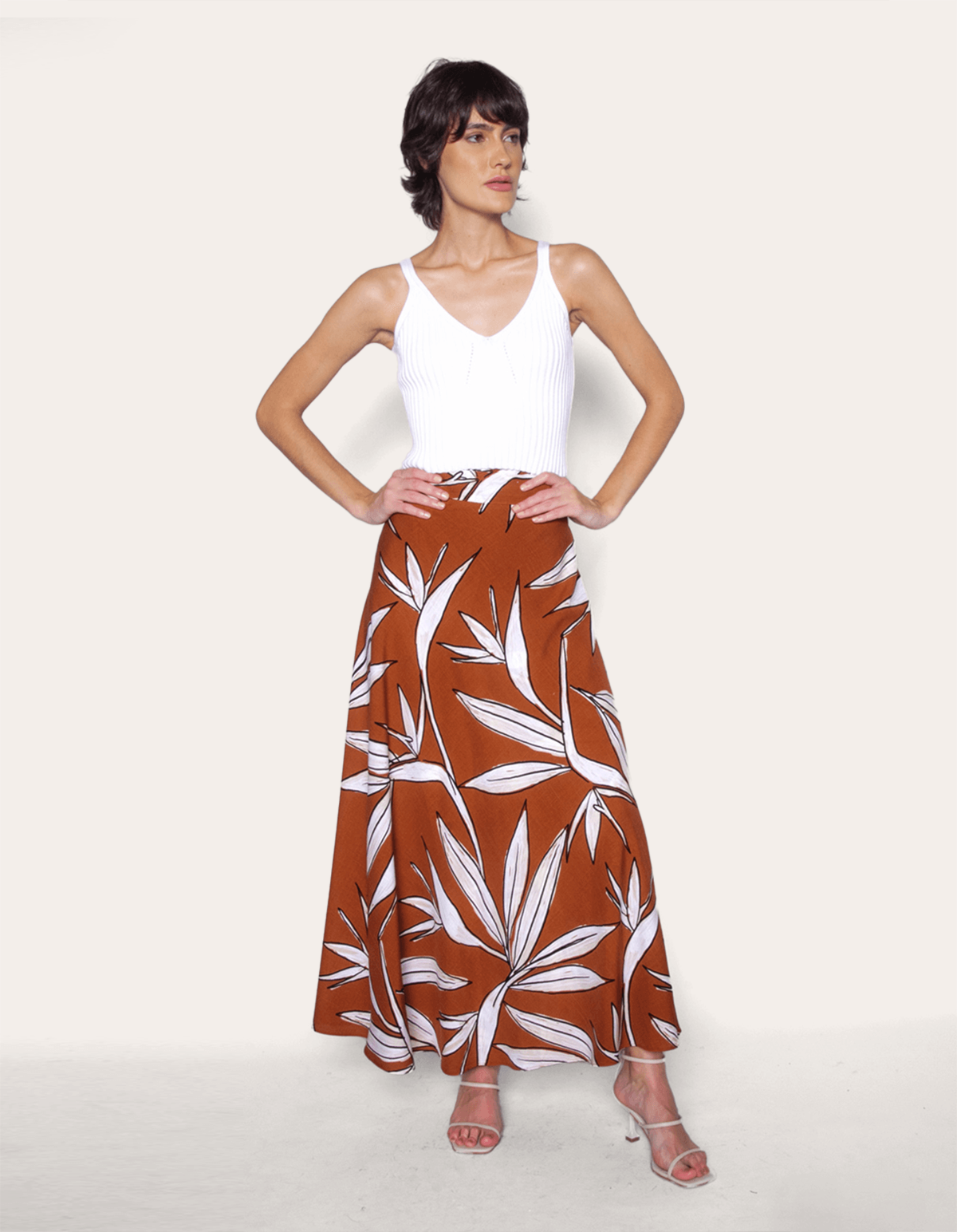 Saia longa transpassada estampada com faixa de amarrar na cintura. esse modelo vai dar vida para qualquer visual leve e descontraído.