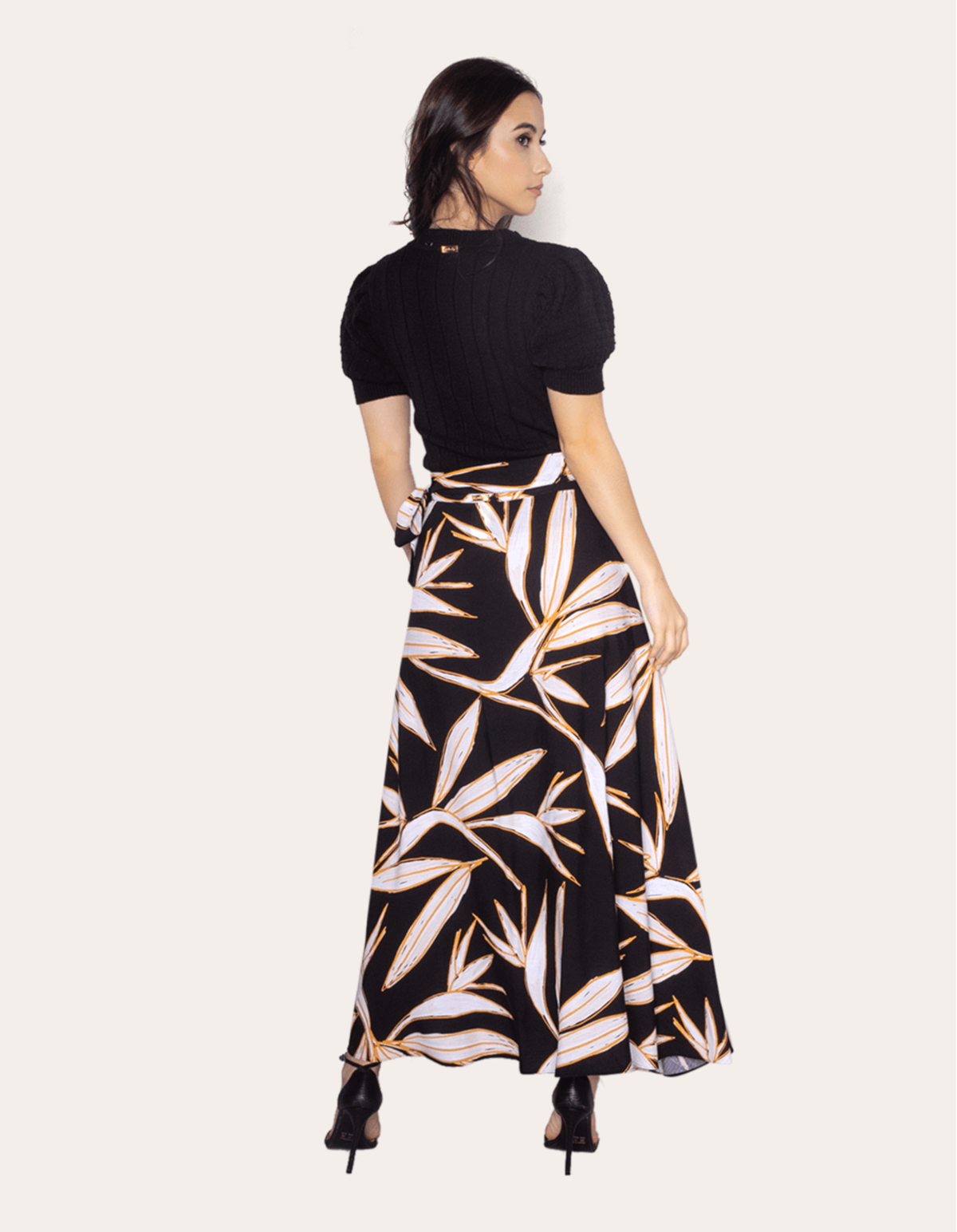 Saia longa transpassada estampada com faixa de amarrar na cintura. esse modelo vai dar vida para qualquer visual leve e descontraído.
