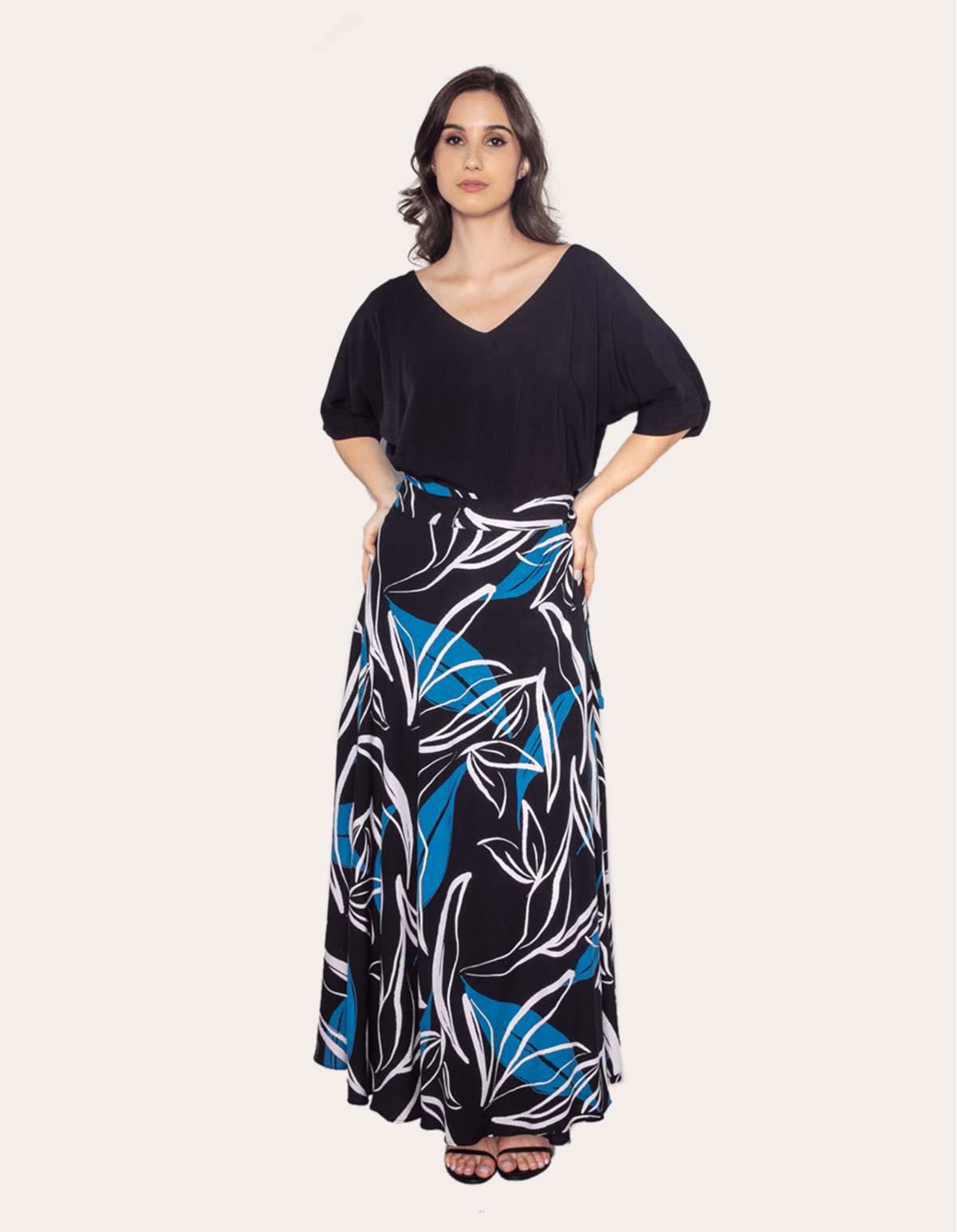 Saia longa transpassada estampada