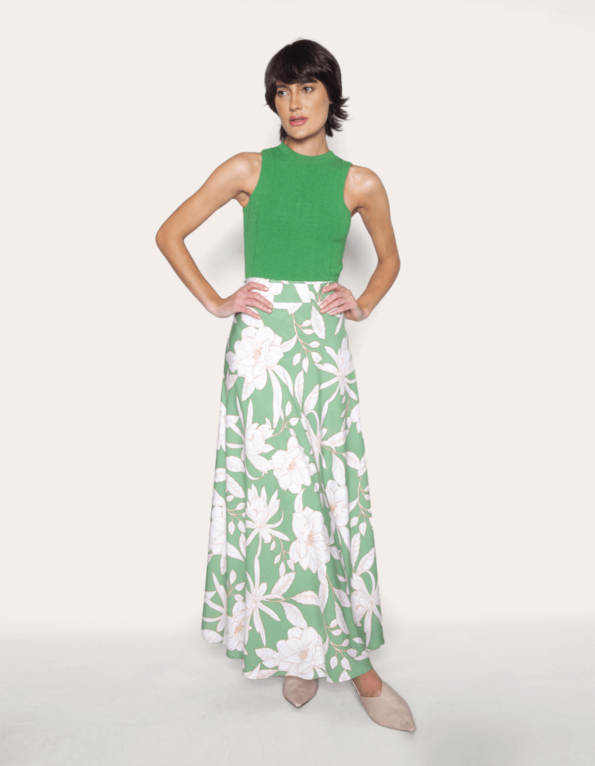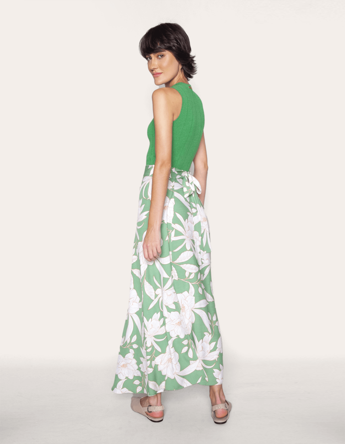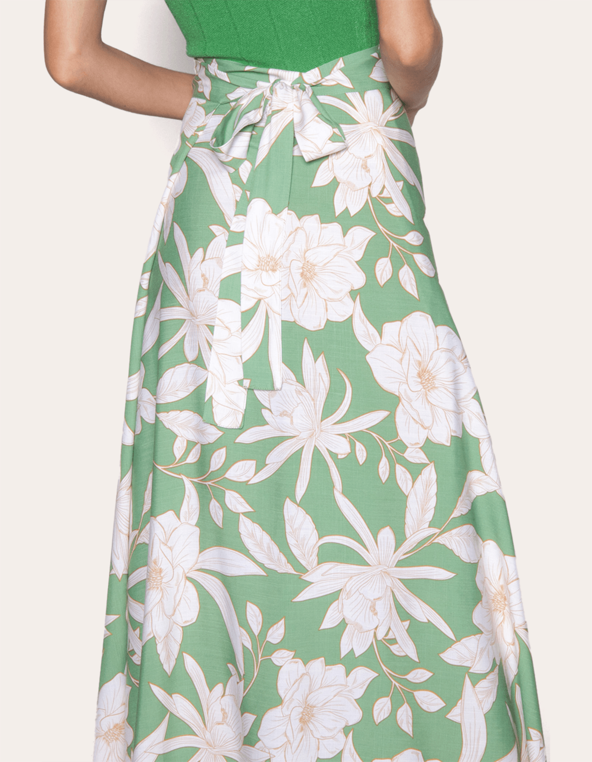 Saia longa transpassada estampada com faixa de amarrar na cintura. esse modelo vai dar vida para qualquer visual leve e descontraído.