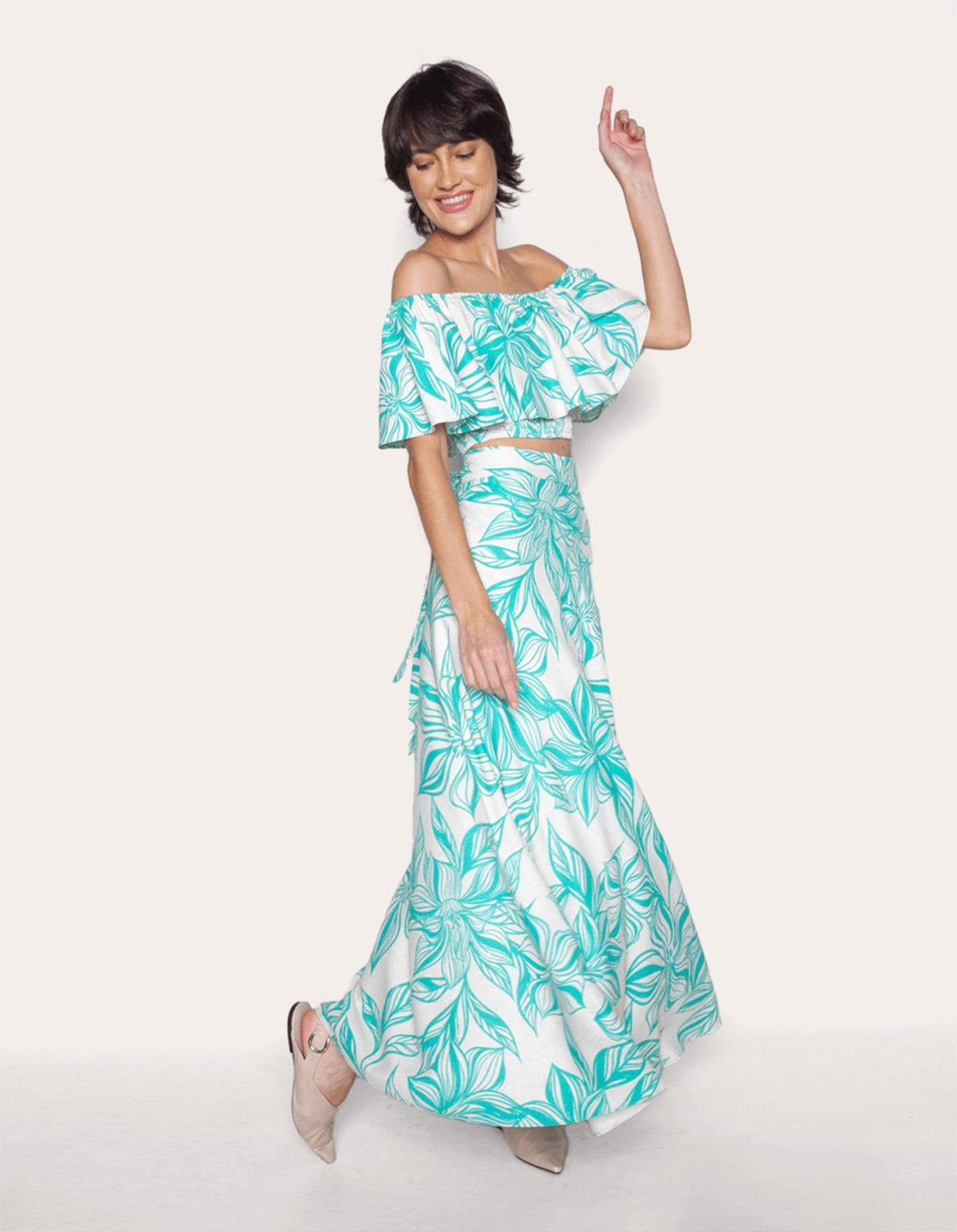 Saia longa transpassada estampada