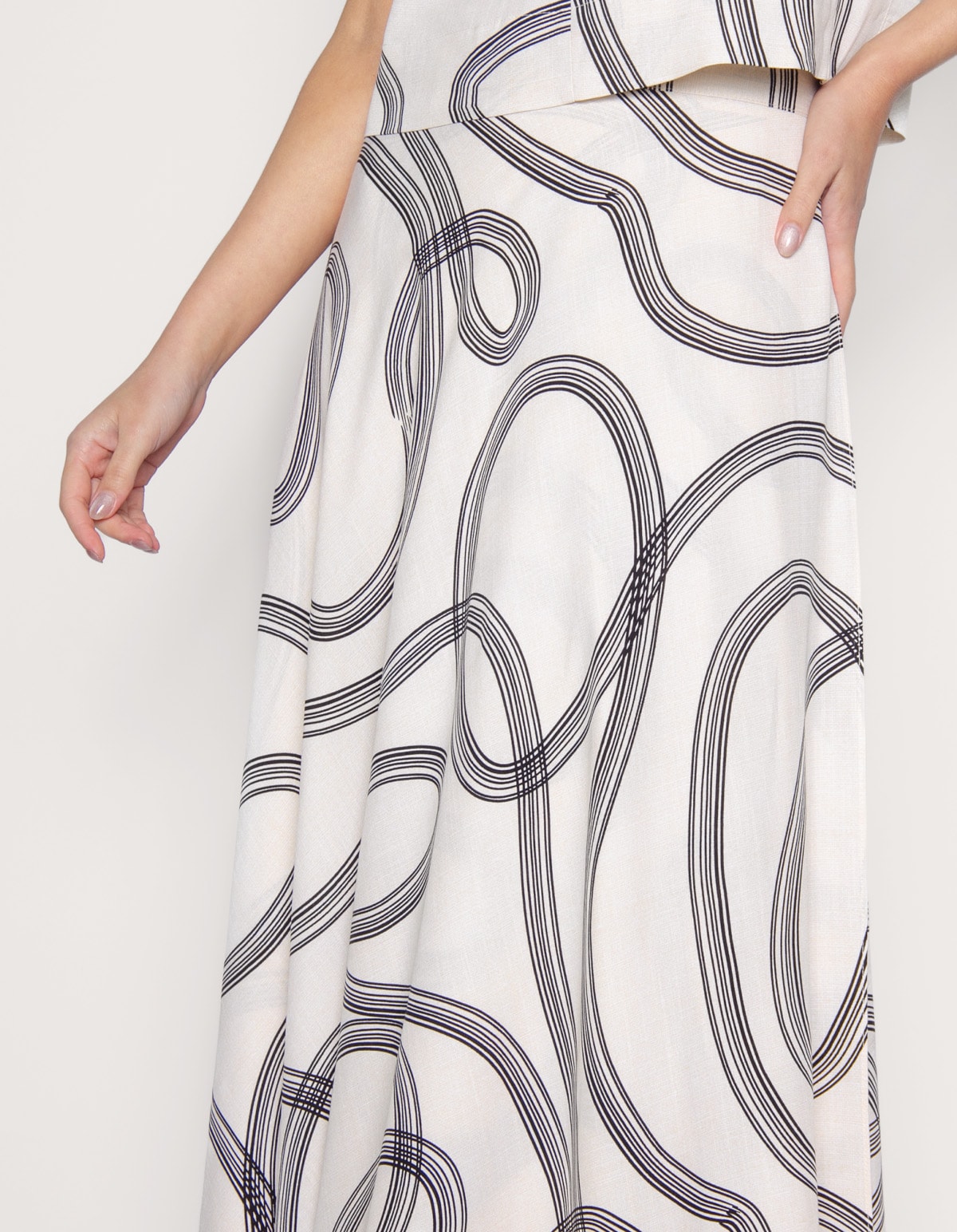Saia longa estampada transpassada envelope, sua cintura alta pode ser ajustada por uma faixa e por amarração, o que proporciona um ajuste personalizado e um toque de estilo. De tecido leve e fluido, proporciona um movimento delicado ao andar. O design simples e elegante, adequado para diversas ocasiões oferece conforto e sofisticação.