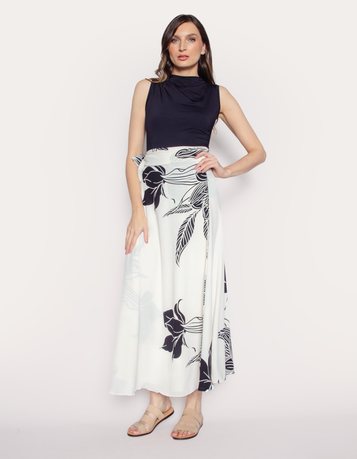 Saia longa transpassada estampada