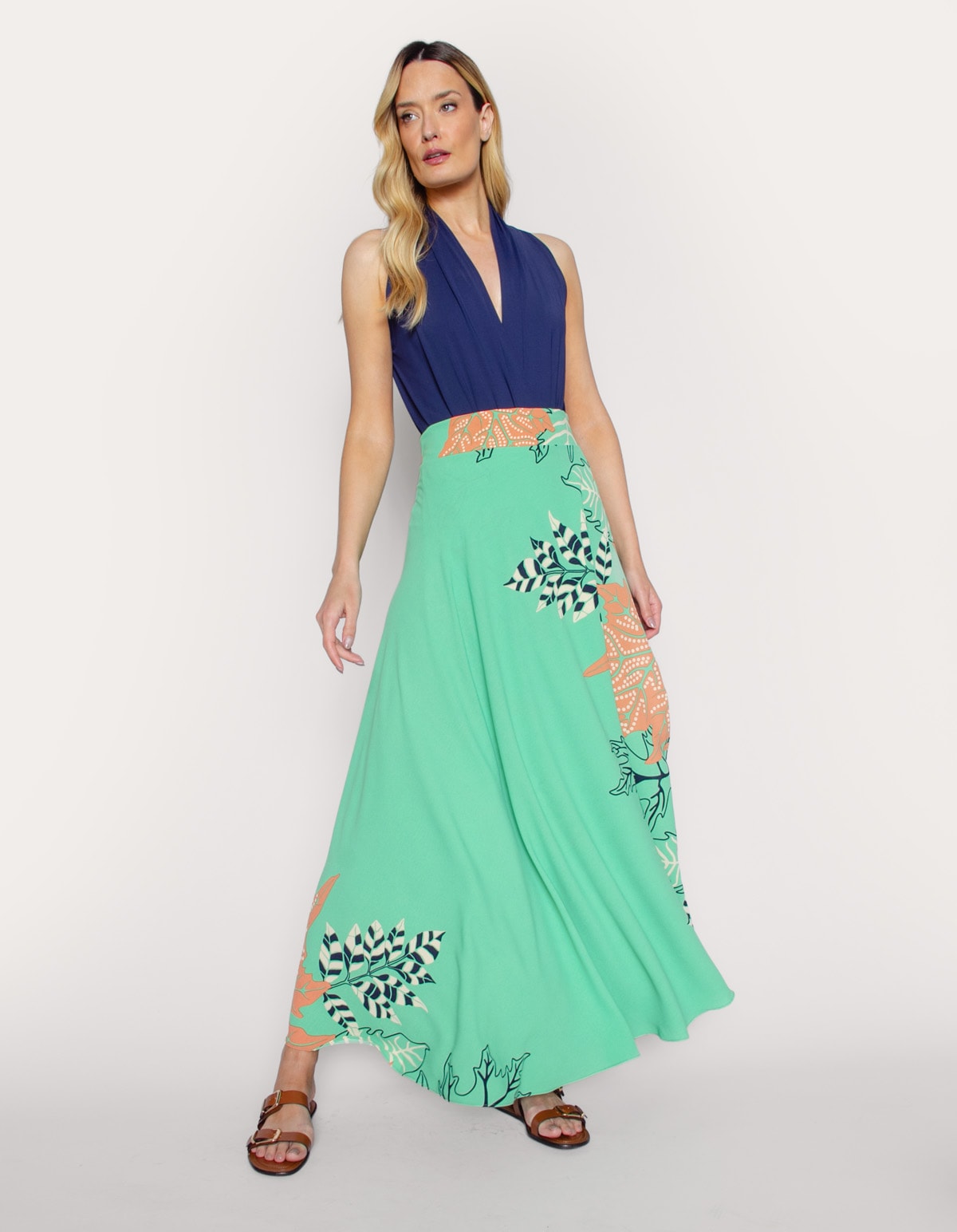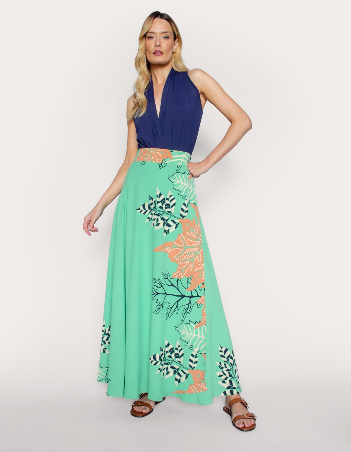 Saia longa transpassada estampada