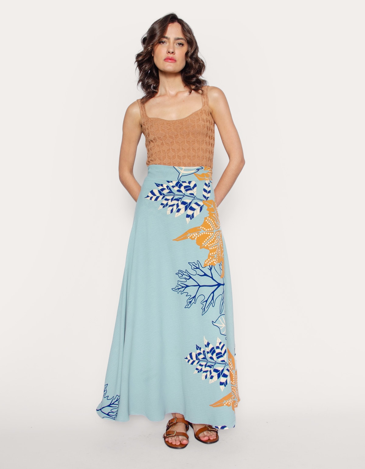 Saia longa transpassada estampada