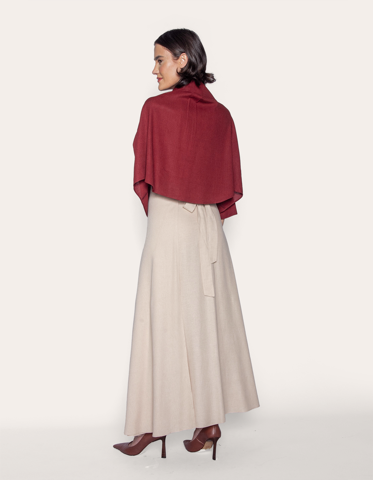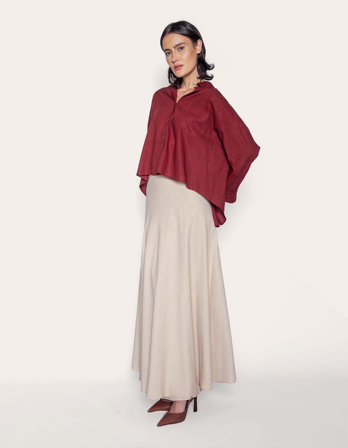 Saia longa transpassada linho. É a escolha perfeita para mulheres que buscam uma peça versátil, sofisticada e atemporal.
