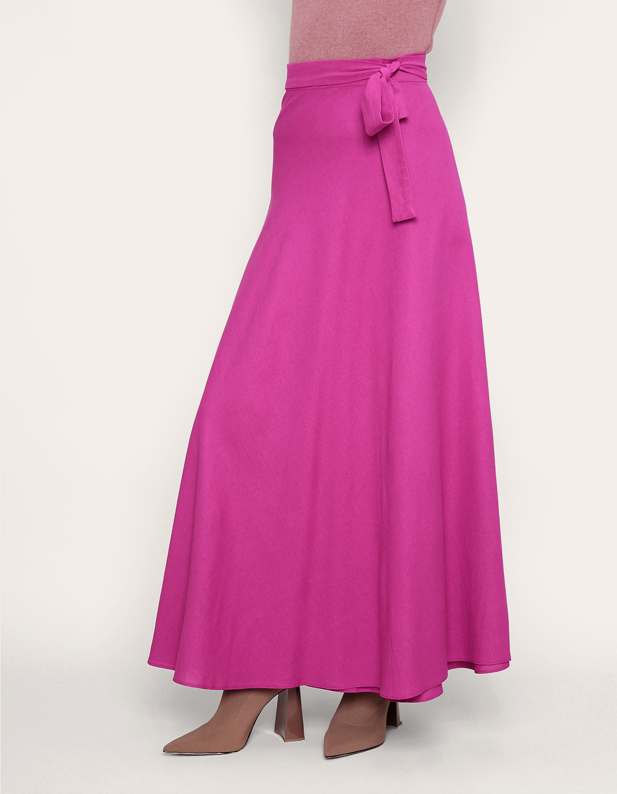 Saia longa transpassada linho. É a escolha perfeita para mulheres que buscam uma peça versátil, sofisticada e atemporal.