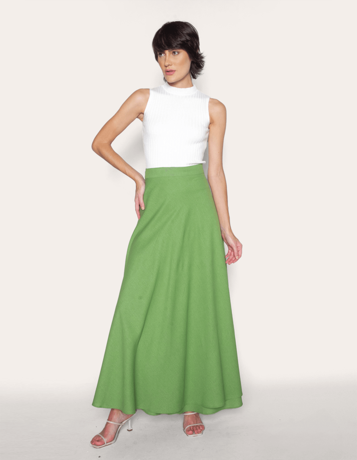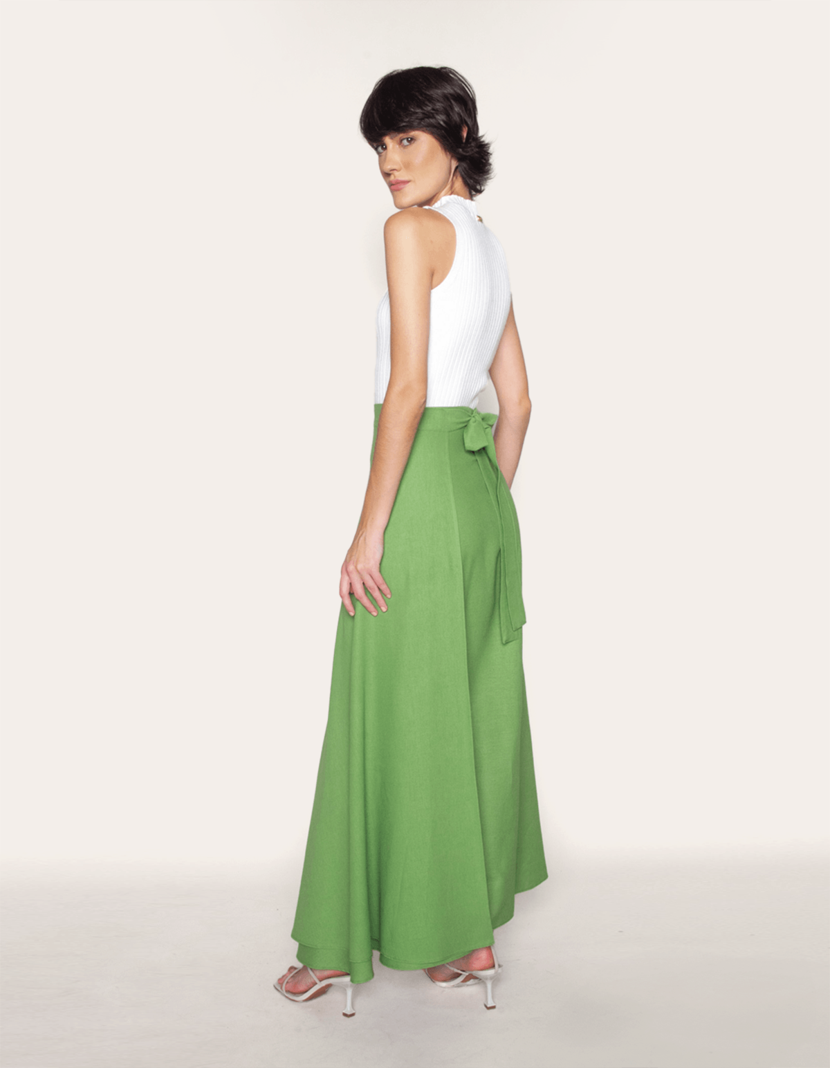 Saia longa transpassada linho. É a escolha perfeita para mulheres que buscam uma peça versátil, sofisticada e atemporal.
