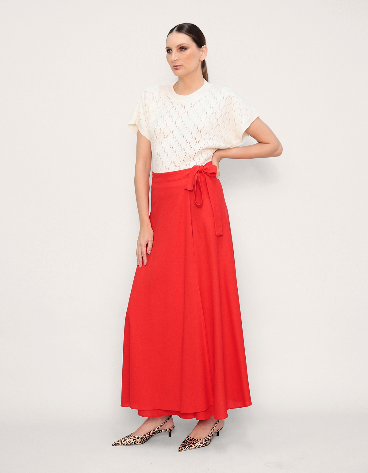 Saia longa transpassada linho. É a escolha perfeita para mulheres que buscam uma peça versátil, sofisticada e atemporal.