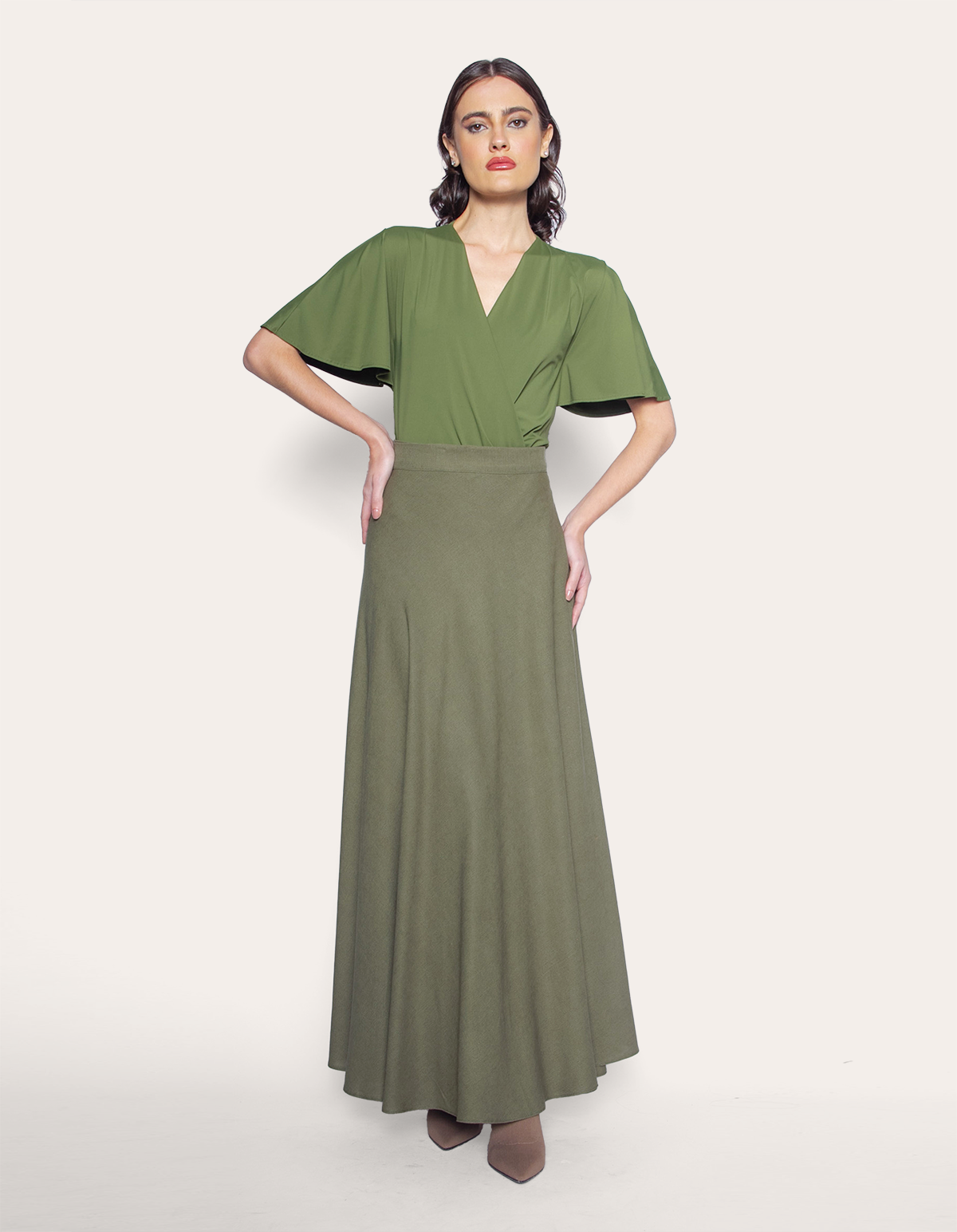 Saia longa transpassada linho. É a escolha perfeita para mulheres que buscam uma peça versátil, sofisticada e atemporal.
