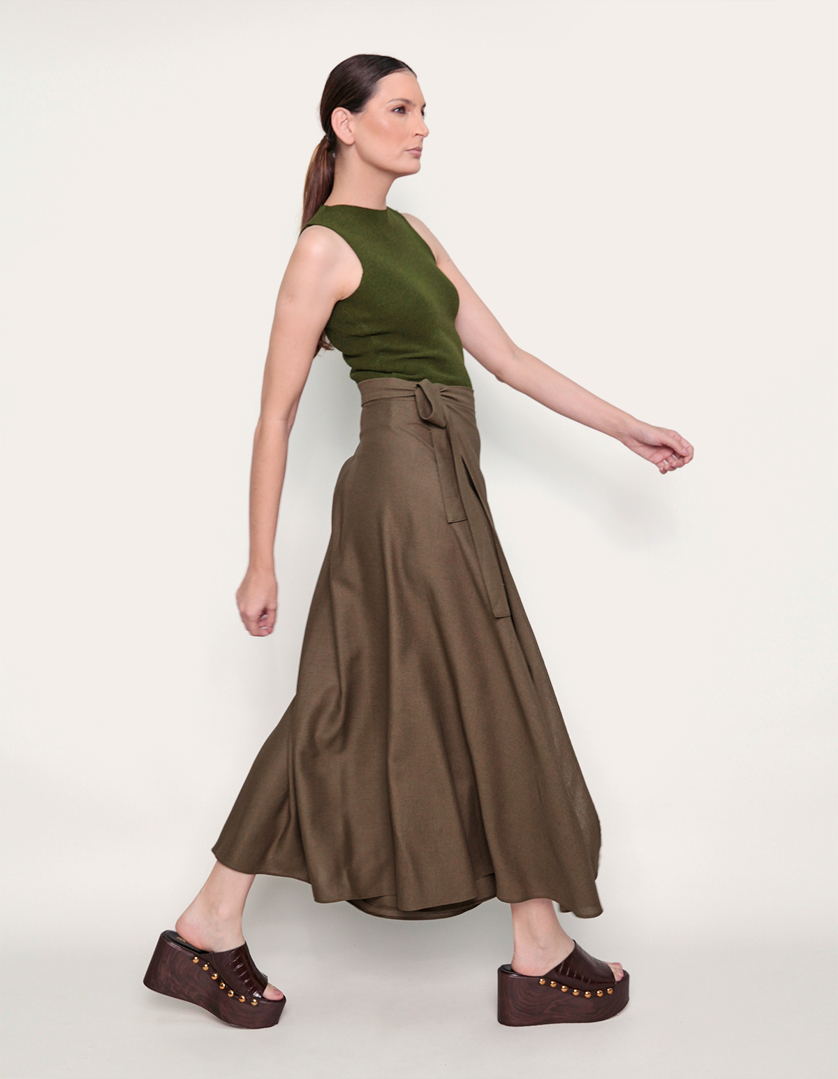 Saia longa transpassada linho. É a escolha perfeita para mulheres que buscam uma peça versátil, sofisticada e atemporal.