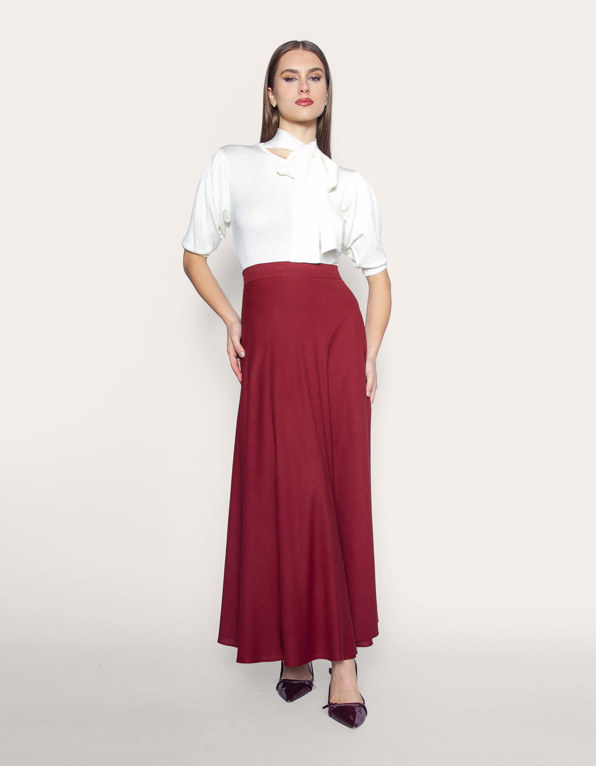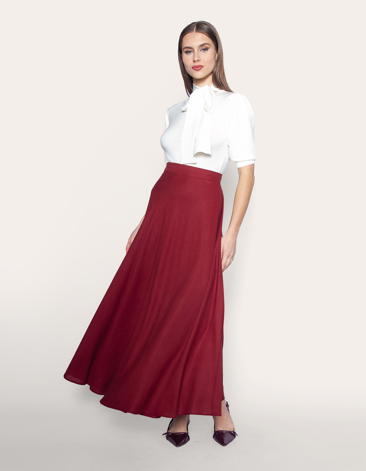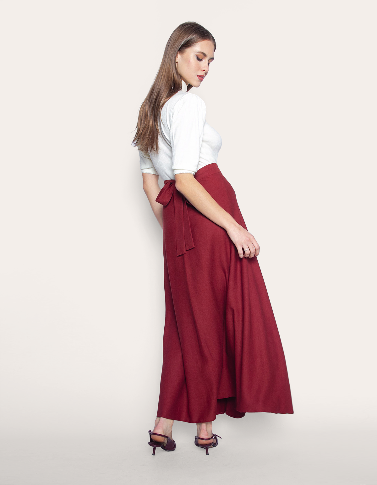 Saia longa transpassada linho. É a escolha perfeita para mulheres que buscam uma peça versátil, sofisticada e atemporal.