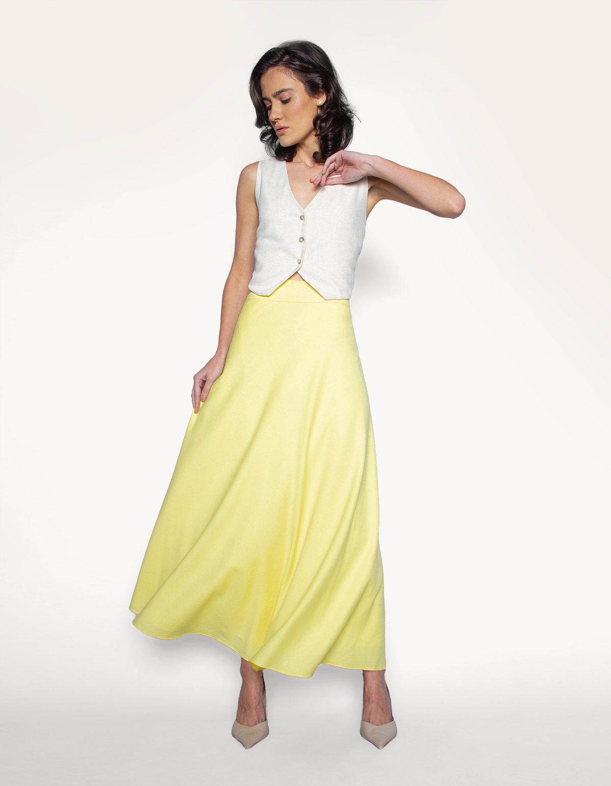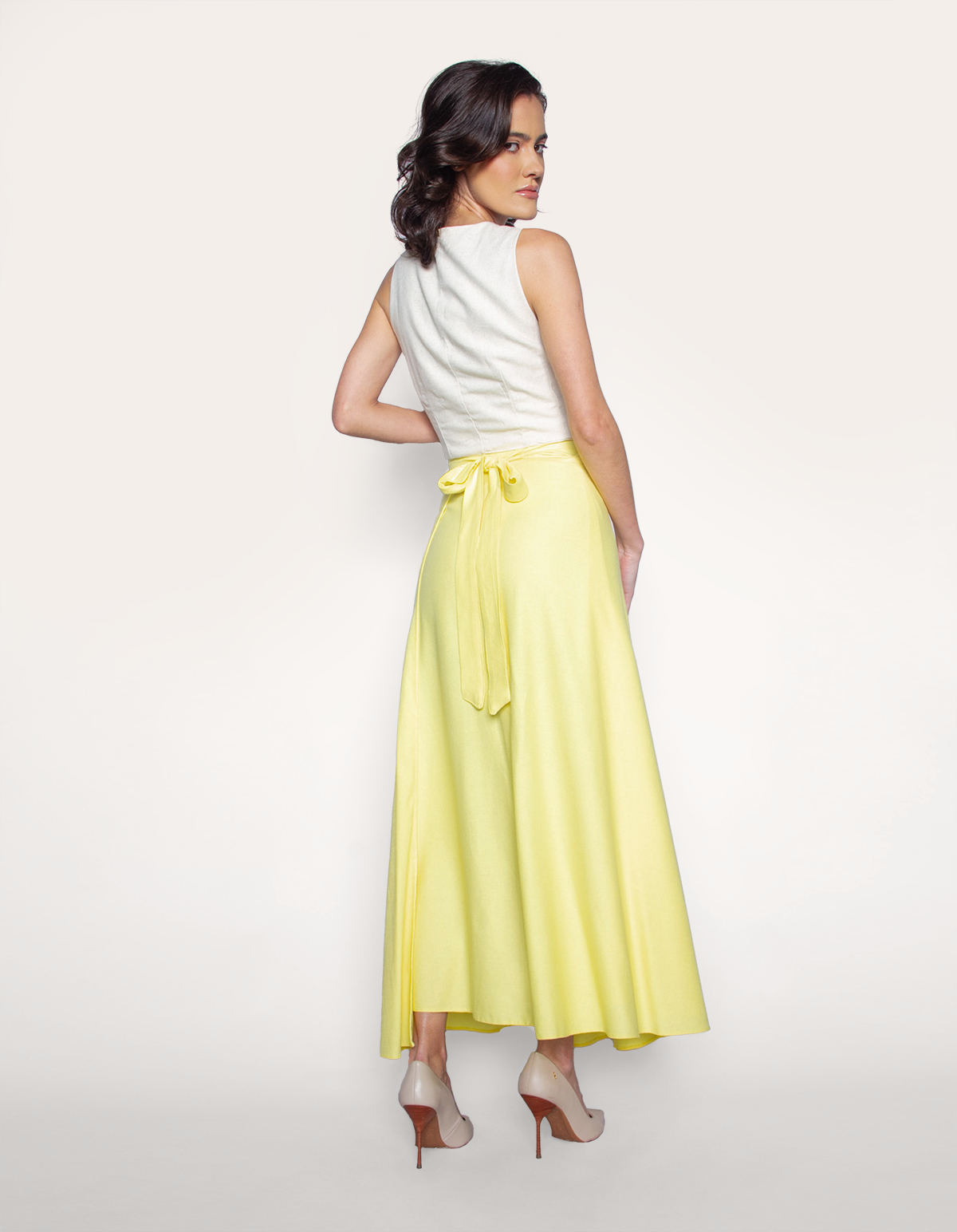 Saia longa transpassada linho. É a escolha perfeita para mulheres que buscam uma peça versátil, sofisticada e atemporal.