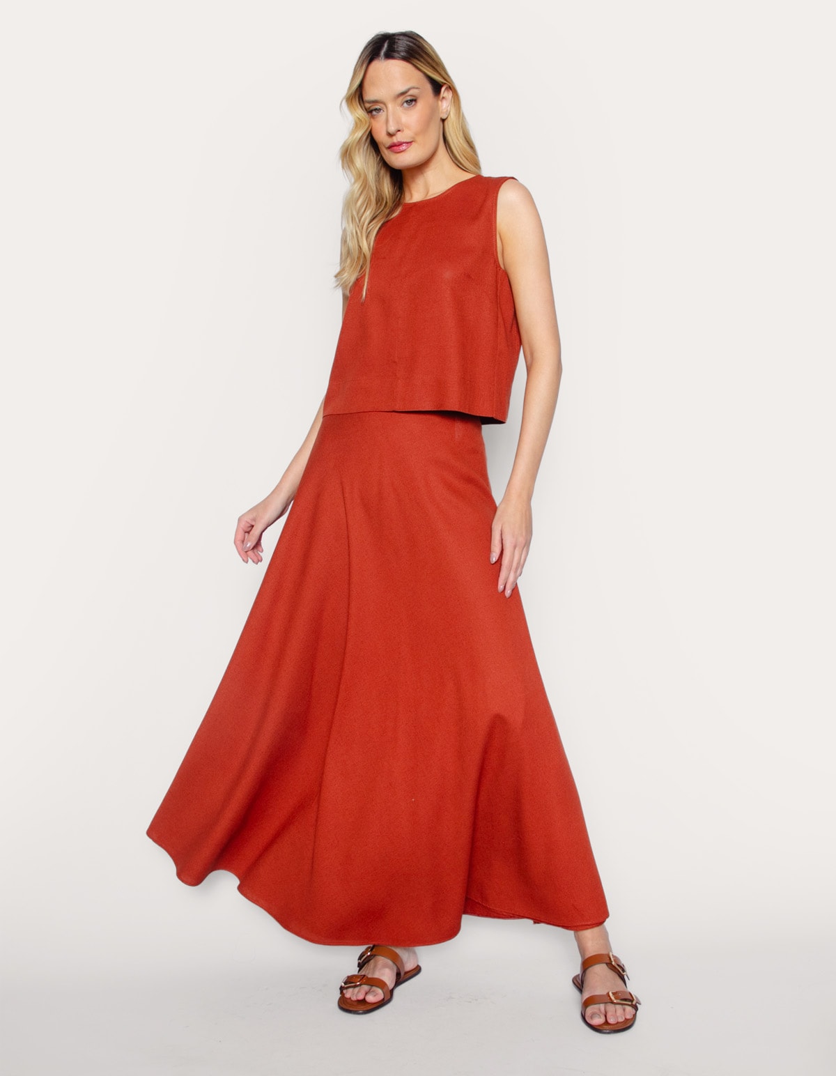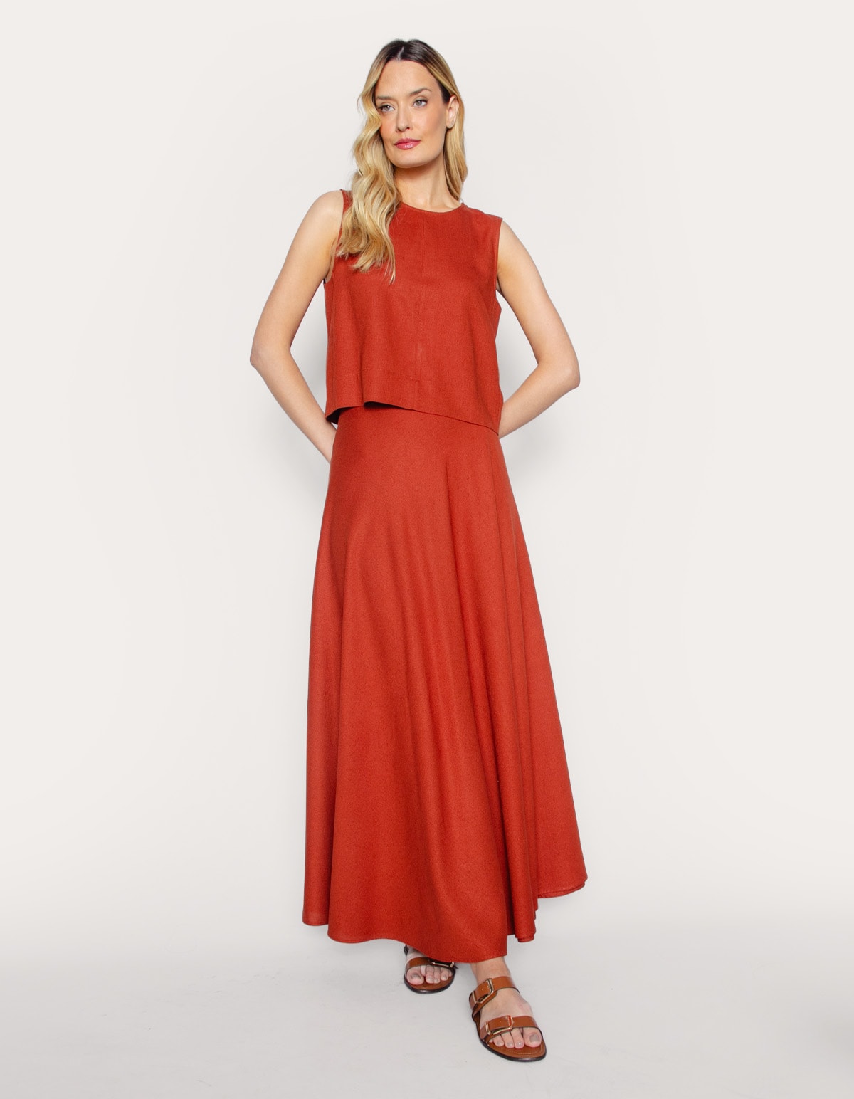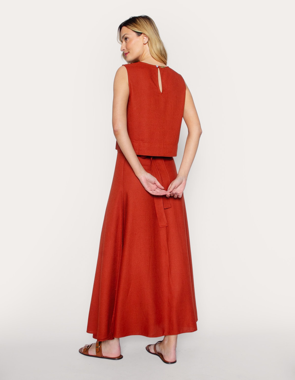 Saia longa transpassada linho. É a escolha perfeita para mulheres que buscam uma peça versátil, sofisticada e atemporal.