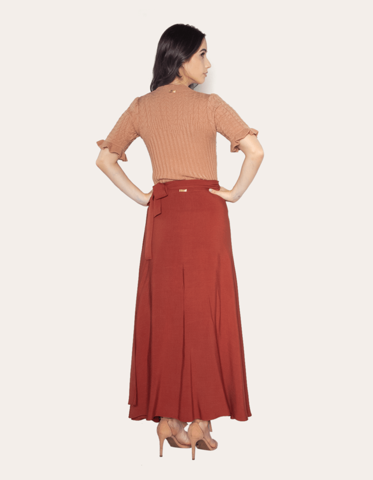Saia longa transpassada estampada com faixa de amarrar na cintura. esse modelo vai dar vida para qualquer visual leve e descontraído.