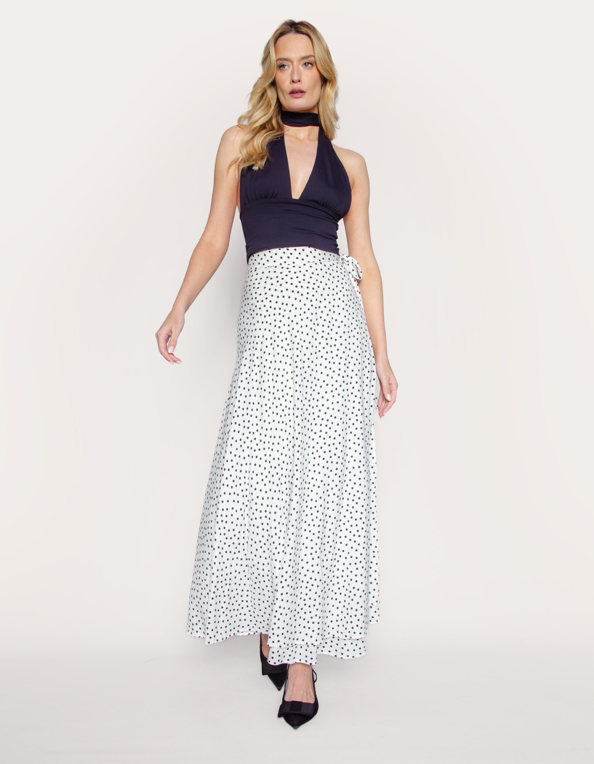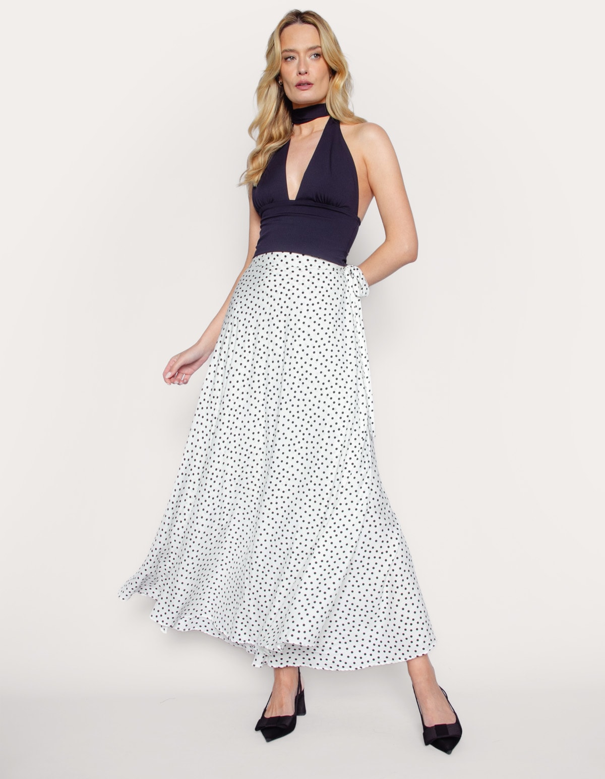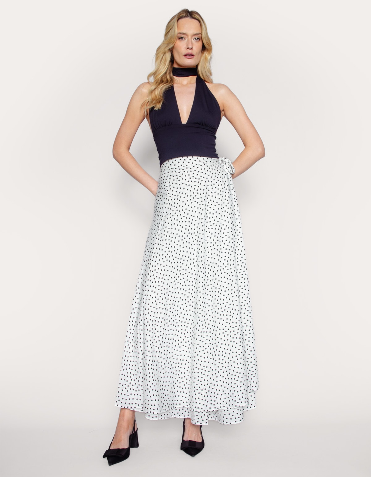 Saia longa transpassada poá