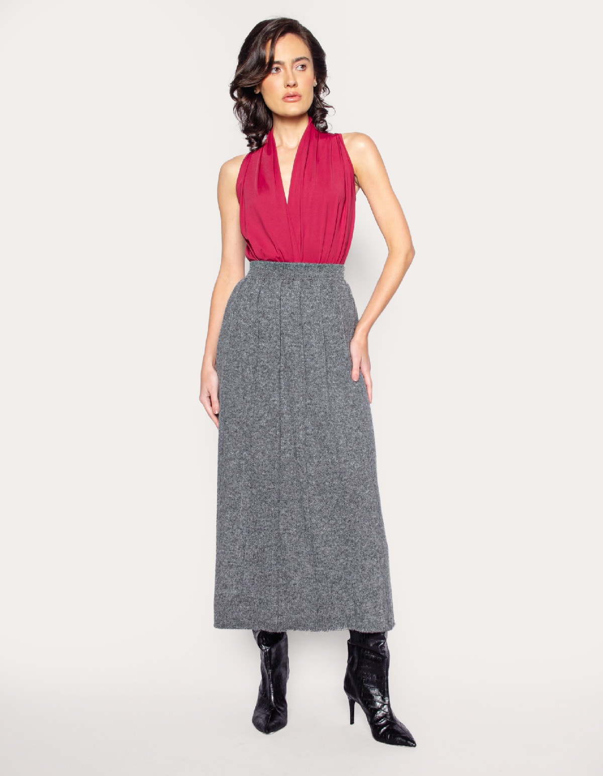 Saia longa tricot plissada
