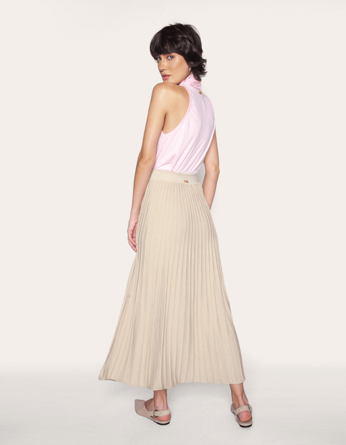 Saia longa tricot plissada.