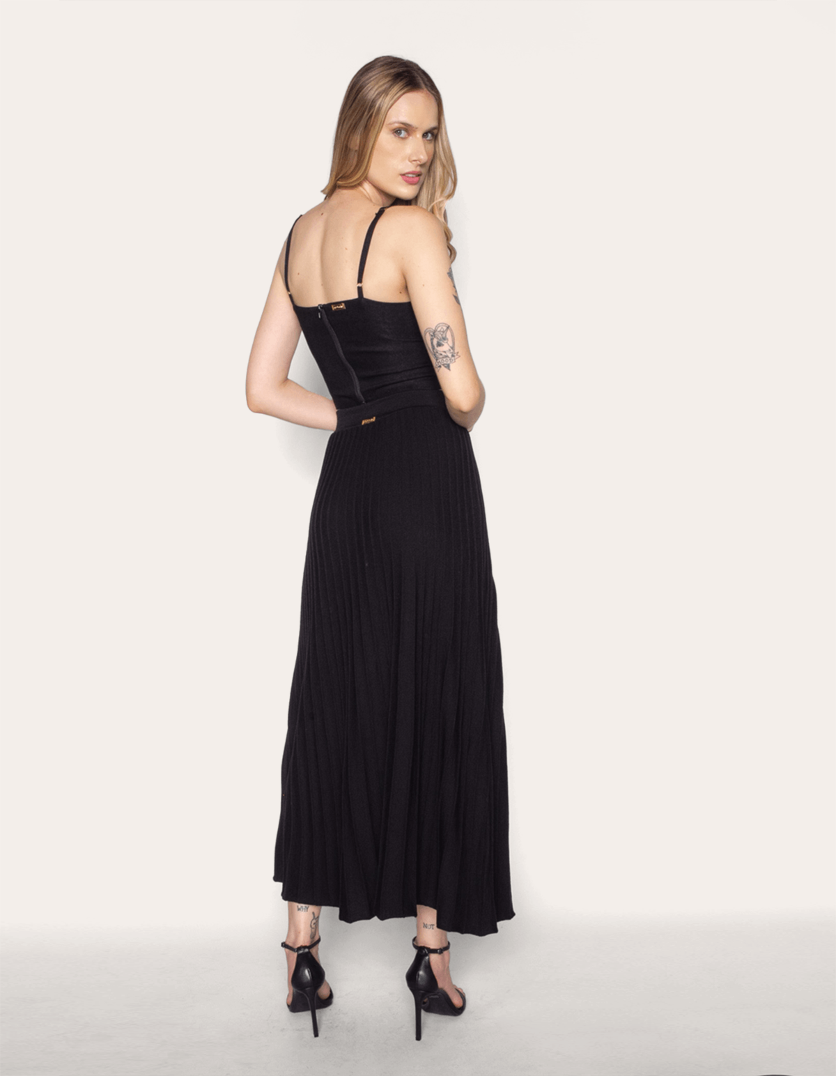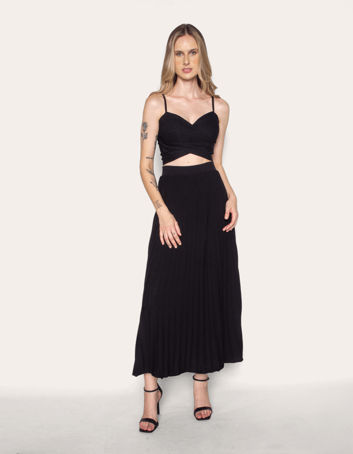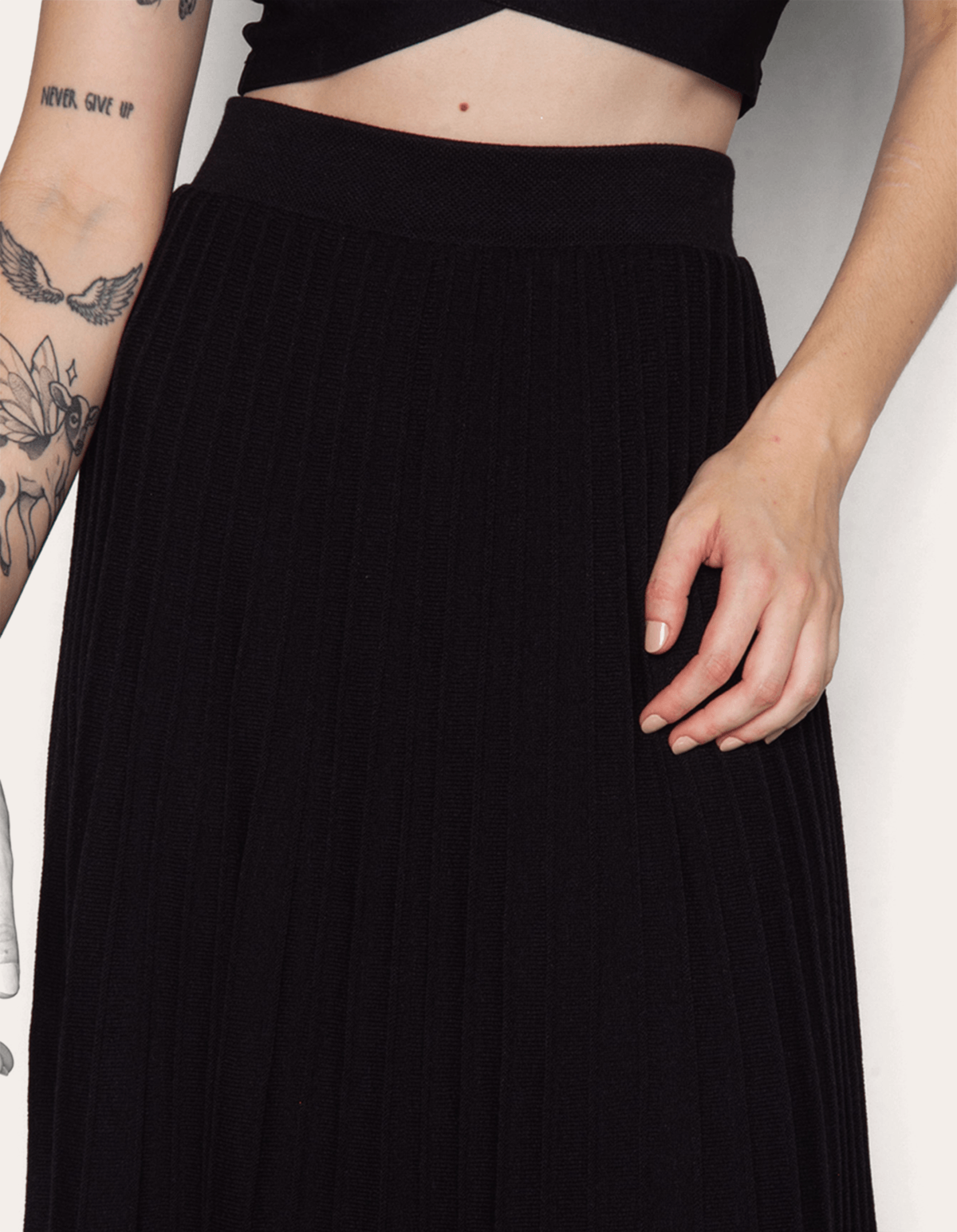 Saia longa tricot plissada.