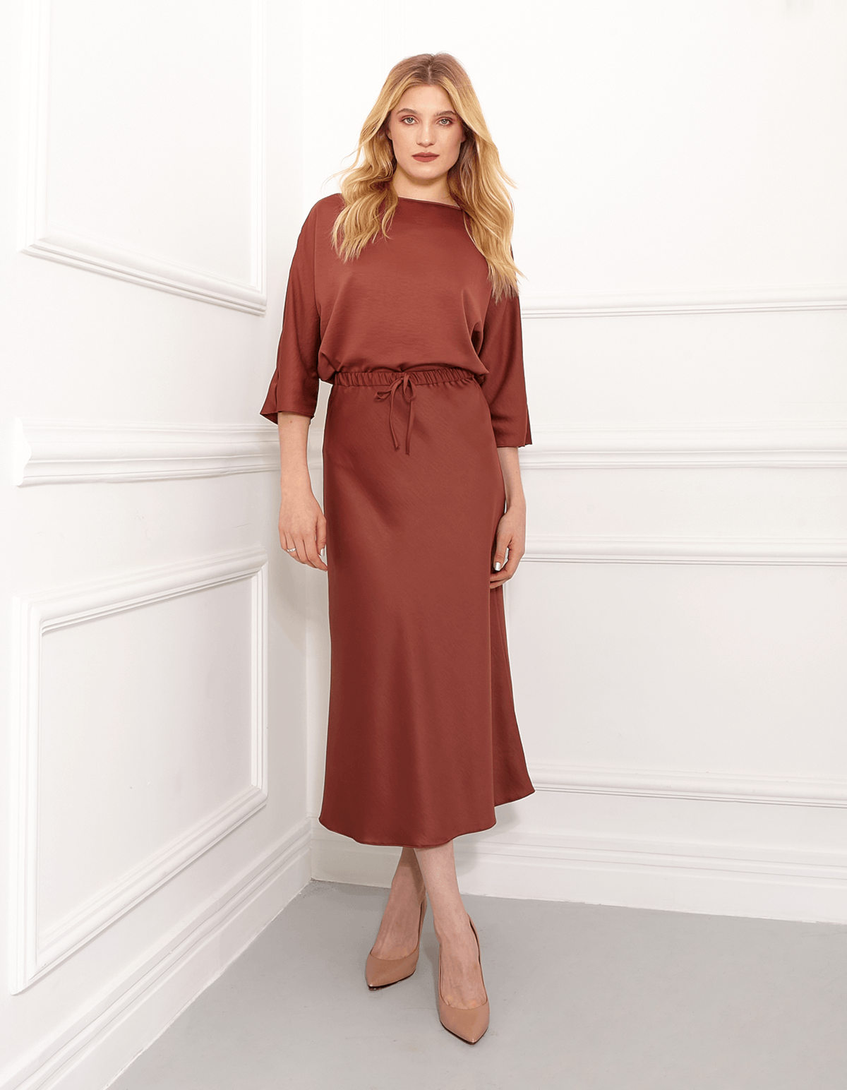 A saia cetim midi é feita com um tecido de brilho suave e macio. com um caimento fluido e irresistível, é a opção ideal para todas as estações. experimente esse toque luxuoso e se apaixone!