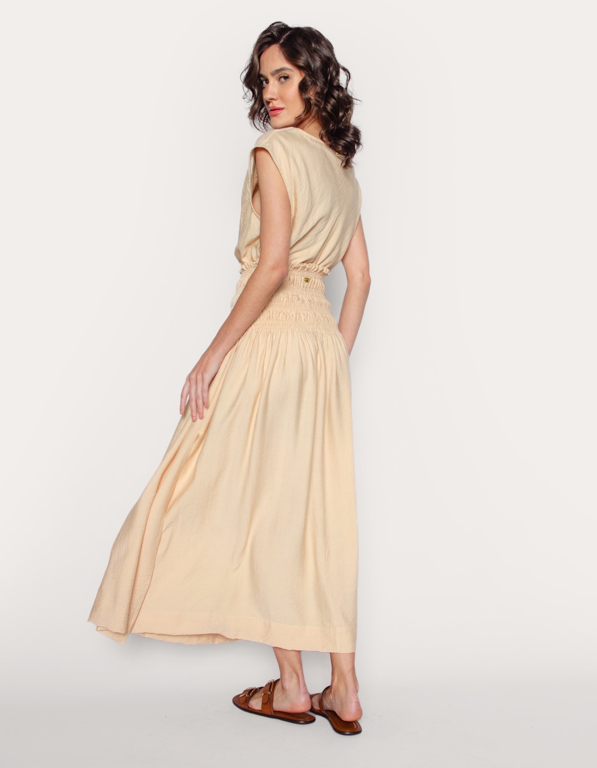 Para as cores azul escuro, marrom : 85% Viscose 12% Linho 3% Elastano