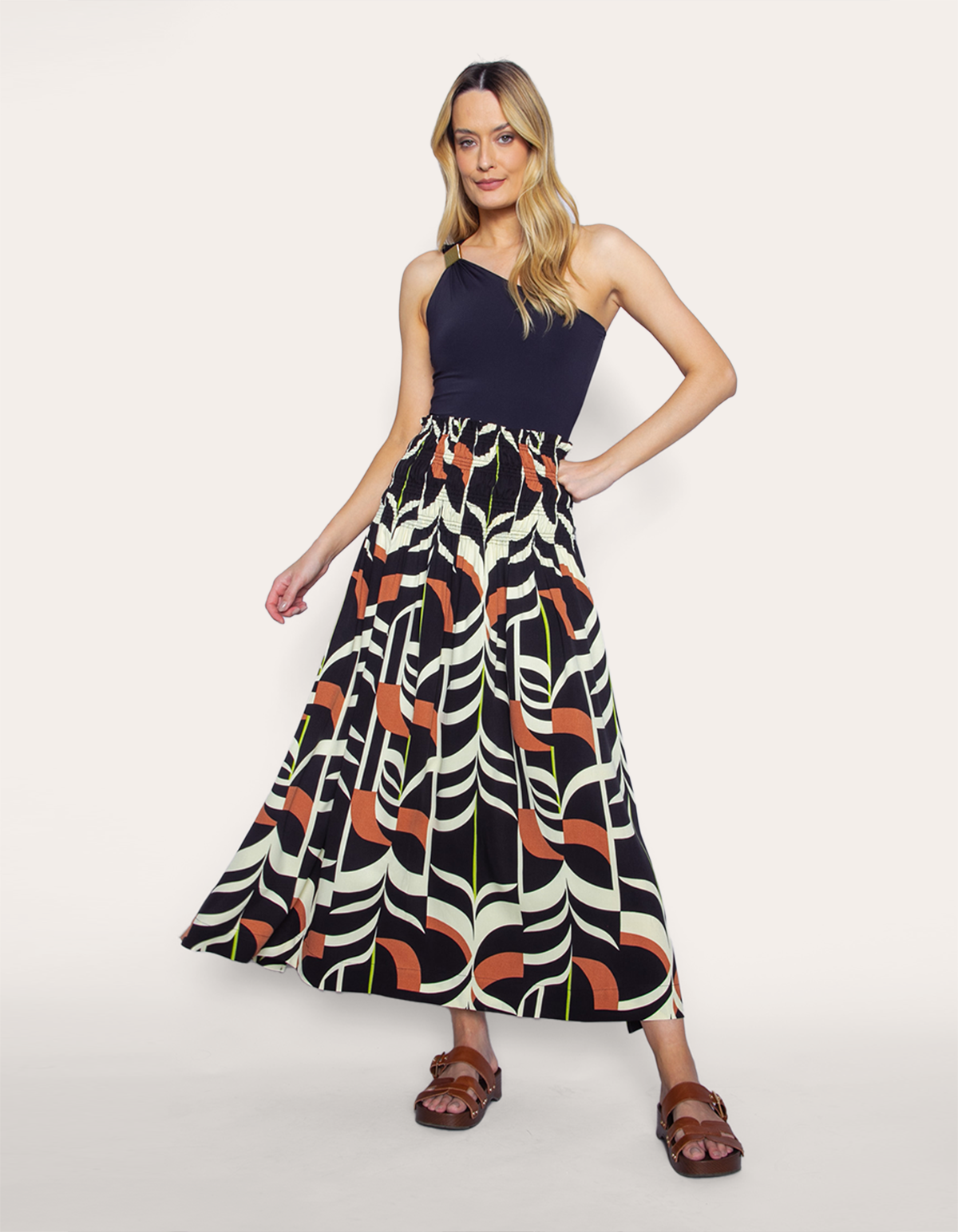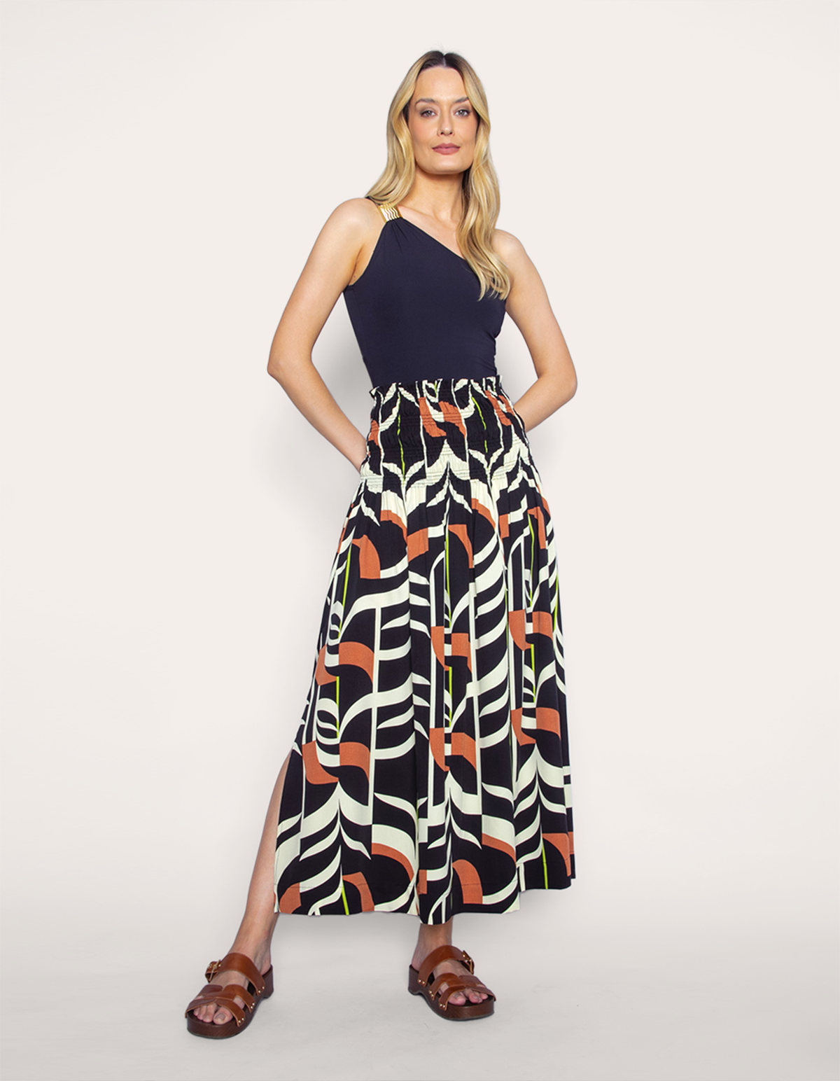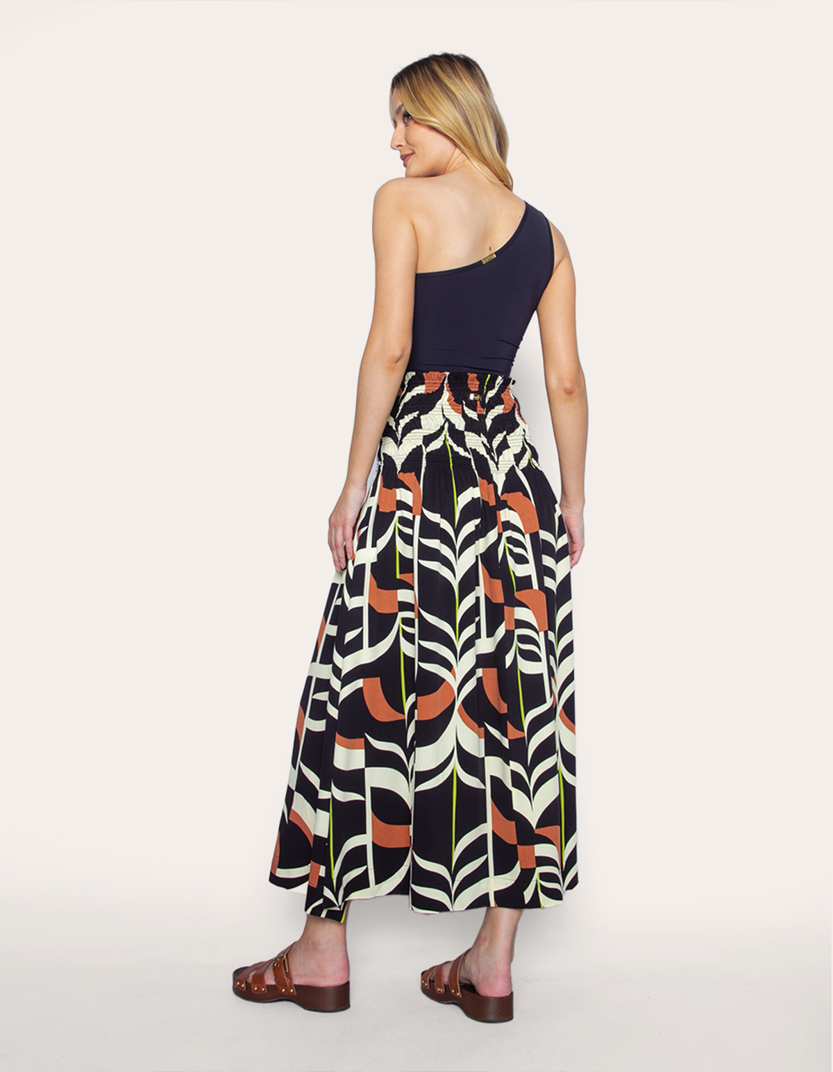 Saia midi cós elástico estampado