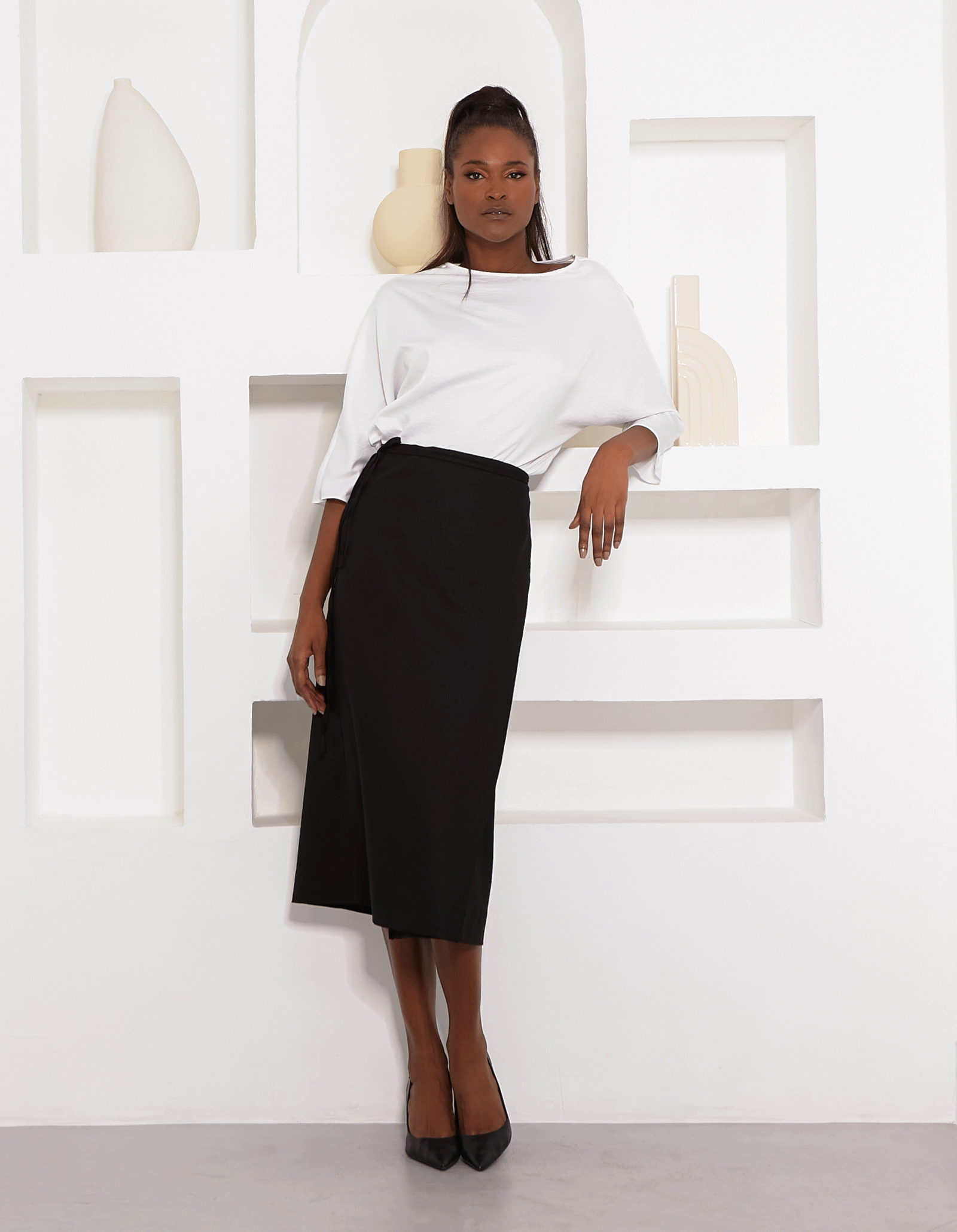 Adicione um toque de elegância ao seu guarda-roupa com nossa saia envelope de linho, modelagem midi, que cai graciosamente acima do tornozelo. esta peça versátil é ideal para diversas combinações de looks, desde uma camisa clássica até um mix de tecidos modernos.