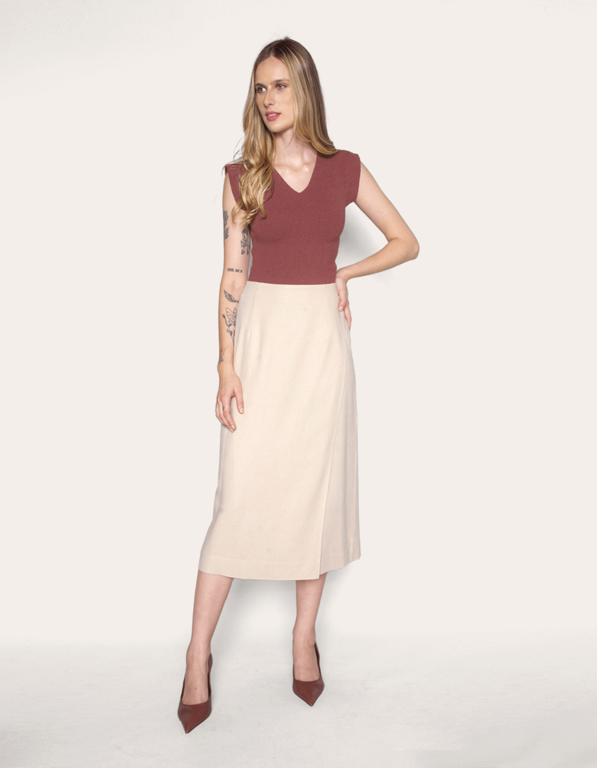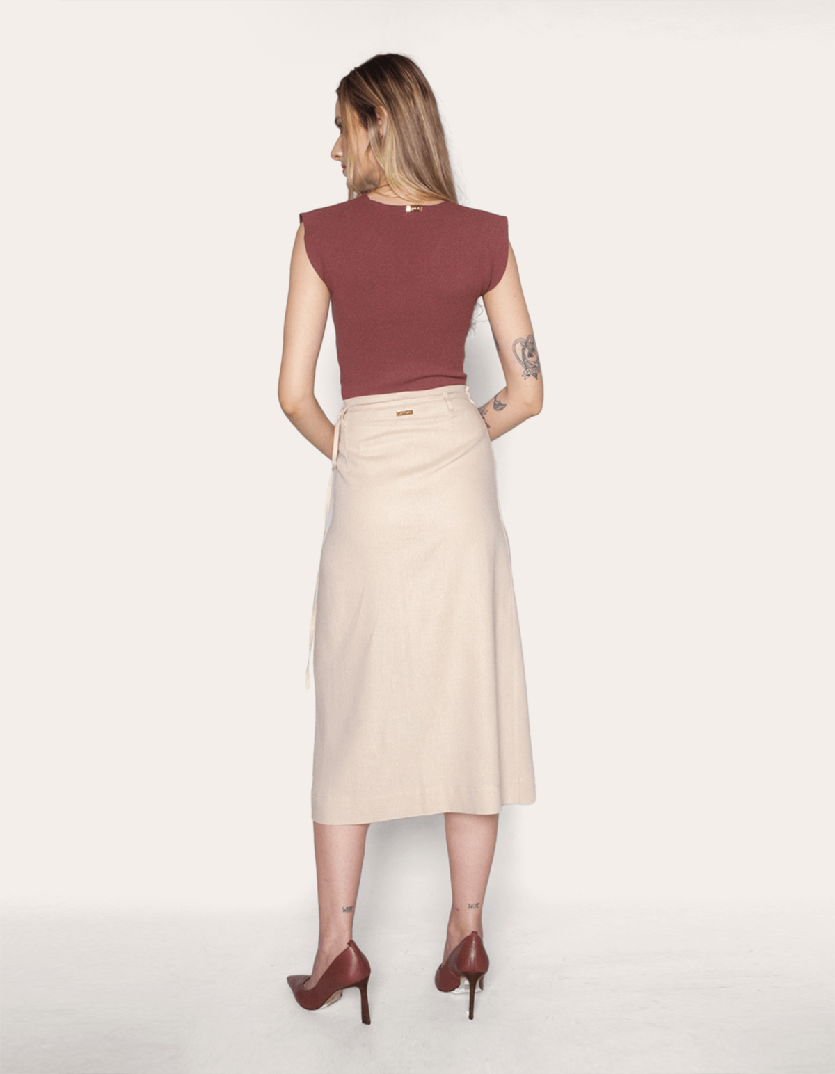 Adicione um toque de elegância ao seu guarda-roupa com nossa saia envelope de linho, modelagem midi, que cai graciosamente acima do tornozelo. esta peça versátil é ideal para diversas combinações de looks, desde uma camisa clássica até um mix de tecidos modernos.