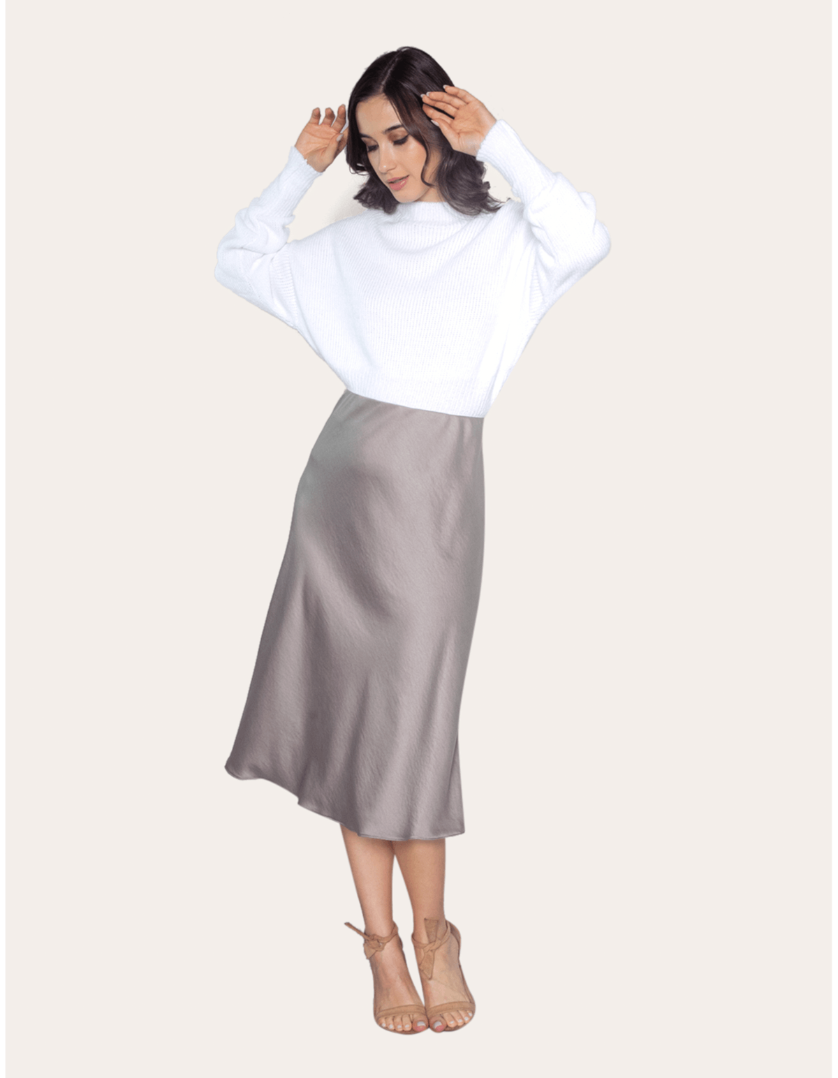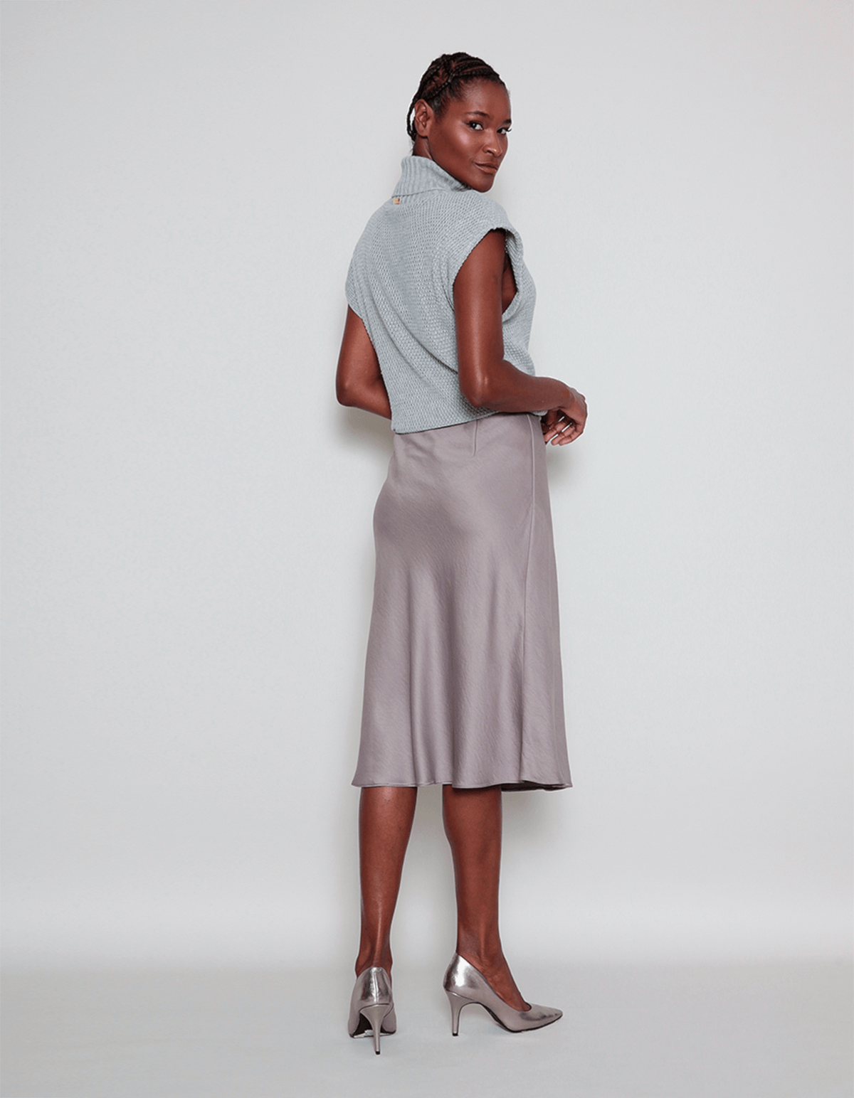 Saia midi evasê cetim