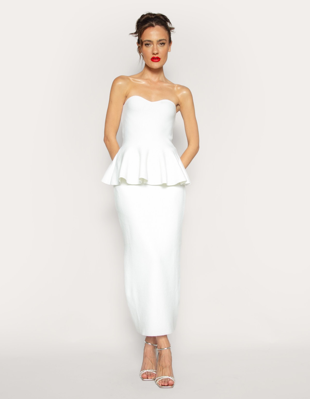 Saia lápis midi cintura alta tricot, com um cós largo e estruturado que ajuda a definir e achatar a região abdominal. De caimento justo e esculpido, abraça a silhueta desde a cintura até a barra. Se estilo sofisticado e poderoso, confere um toque de ousadia e destaque. É uma peça que pode ser usada em ambientes de trabalho formais (combinadas com blazers e camisas), eventos sociais ou até mesmo para um look mais casual com camiseta e tênis dependendo da combinação.
