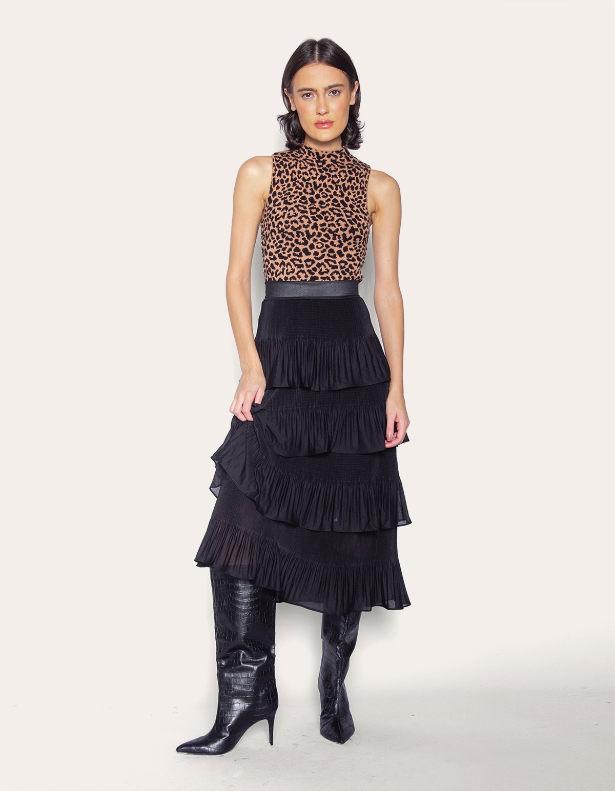 Saia midi com camadas plissadas, possui elástico na cintura. a saia de camadas no estilo boho chique é uma peça marcante dessa tendência, caracterizada por um visual fluido, romântico e despojado. essa peça é versátil e pode ser usada tanto em produções casuais quanto em eventos mais sofisticados, dependendo da escolha dos complementos.