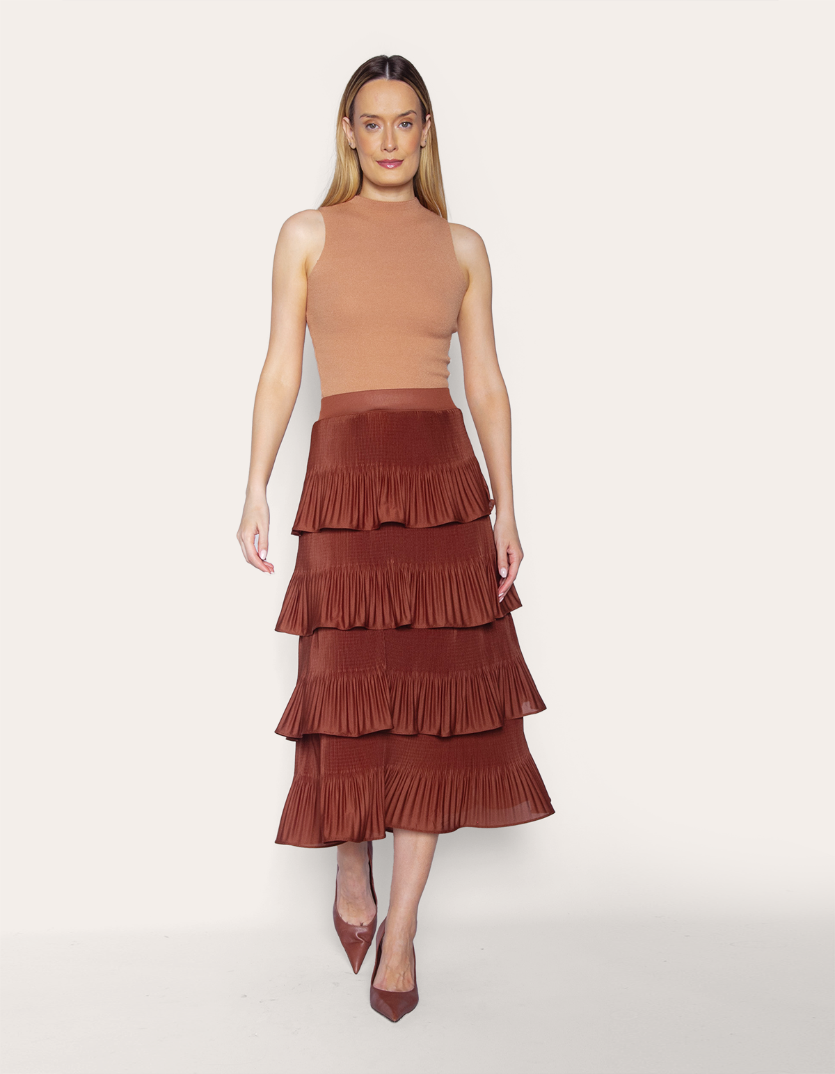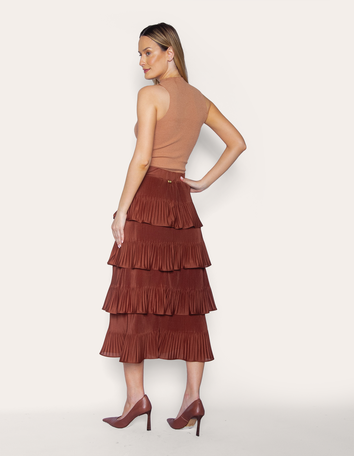 Saia midi plissada camadas