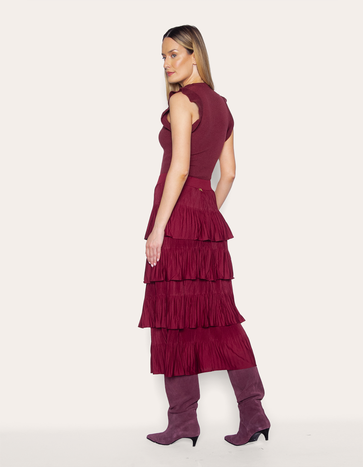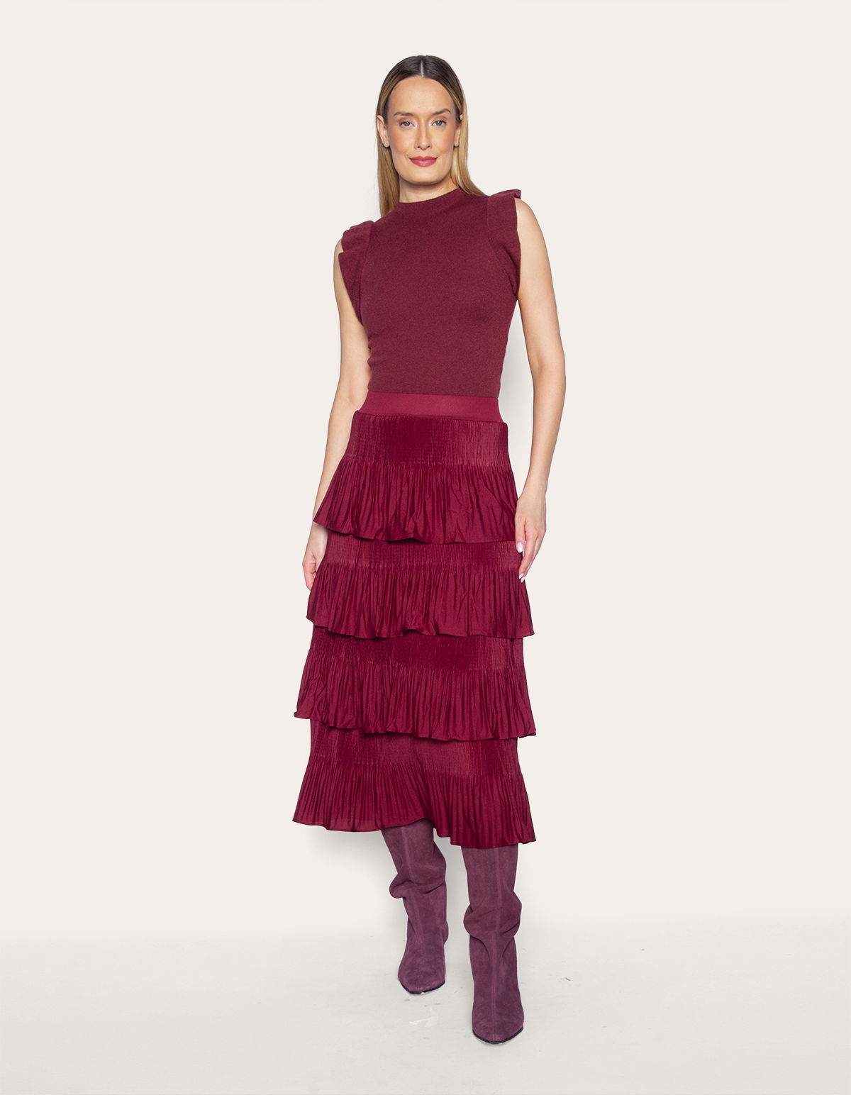 Saia midi com camadas plissadas, possui elástico na cintura. a saia de camadas no estilo boho chique é uma peça marcante dessa tendência, caracterizada por um visual fluido, romântico e despojado. essa peça é versátil e pode ser usada tanto em produções casuais quanto em eventos mais sofisticados, dependendo da escolha dos complementos.
