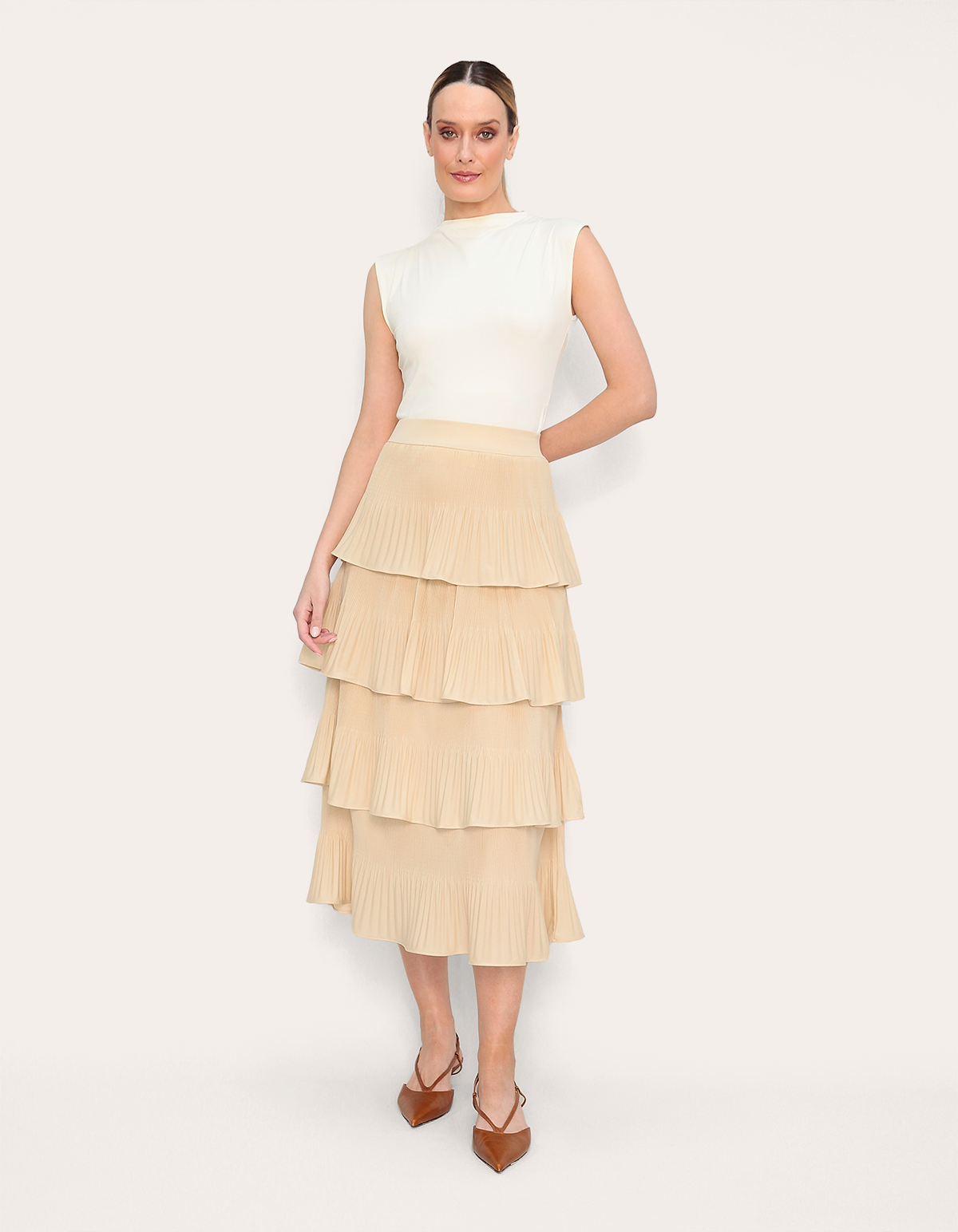 Saia midi plissada camadas