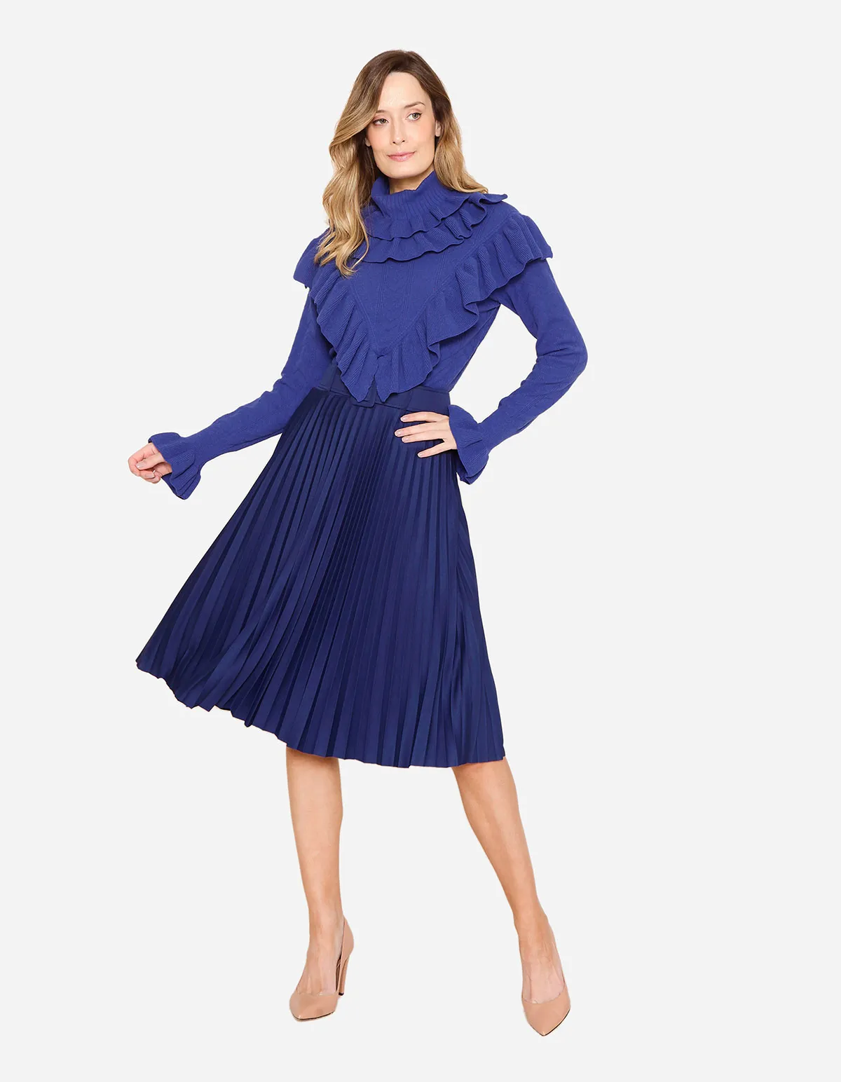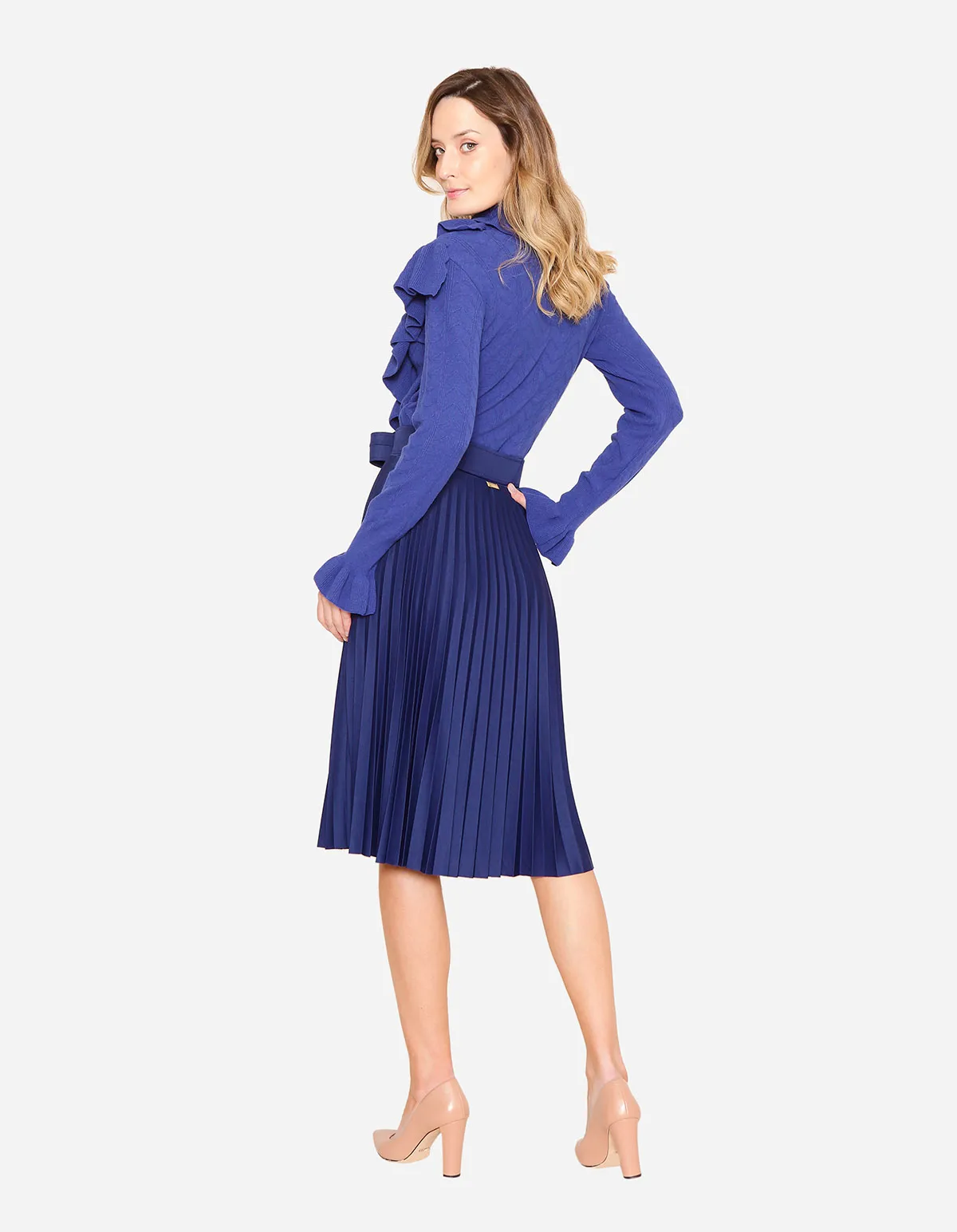 Saia confeccionada em tecido de malha plissada comprimento midi, caimento evasê, elástico no cós e cinto forrado. clássica e atemporal, ela é perfeita para adicionar um toque delicado e romântico ao visual.