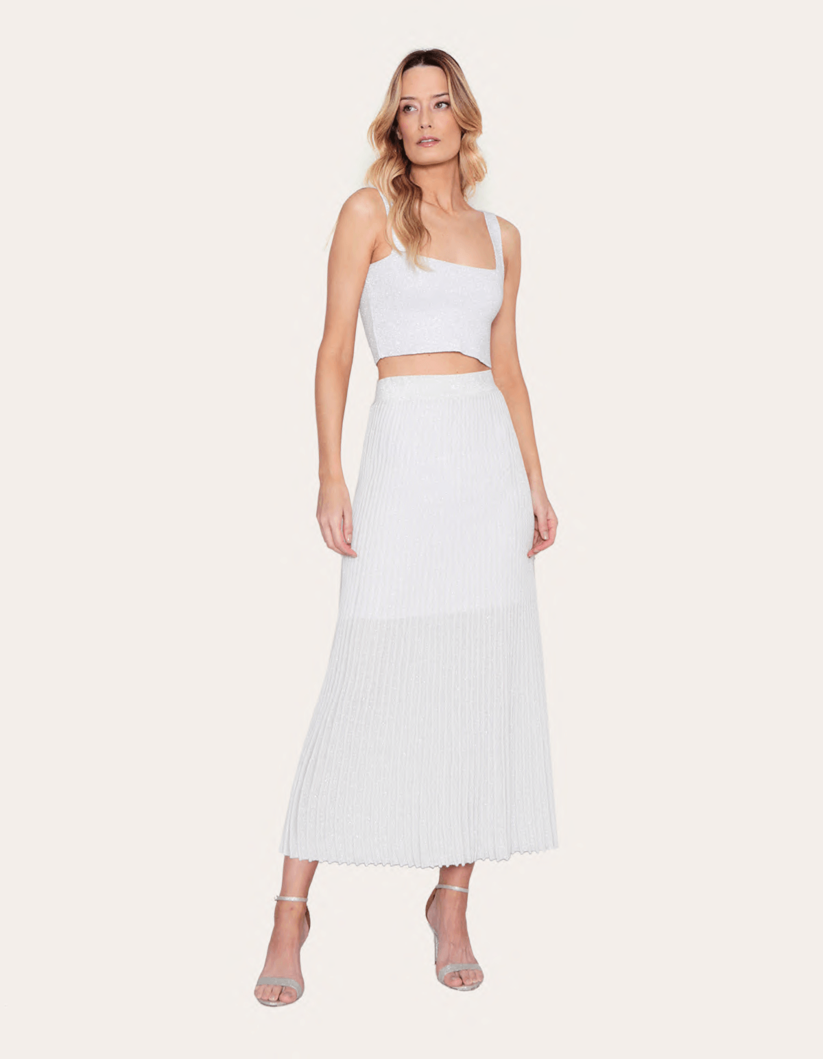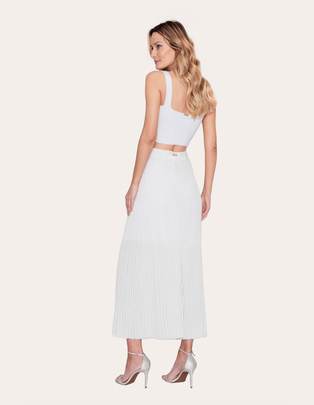 Saia midi tricot lurex, com estilo vintage e confeccionada em modelagem godê, essa lindeza também possui forro e pronta para compor os looks mais lindos e elegantes.