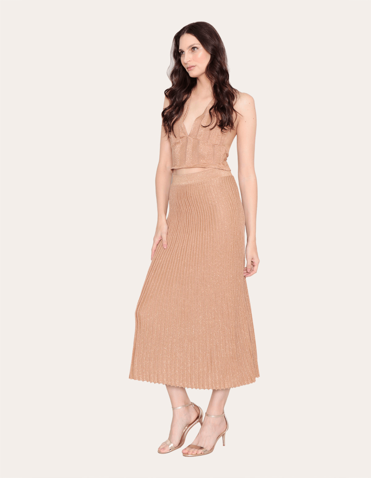 Saia midi plissada tricot lurex