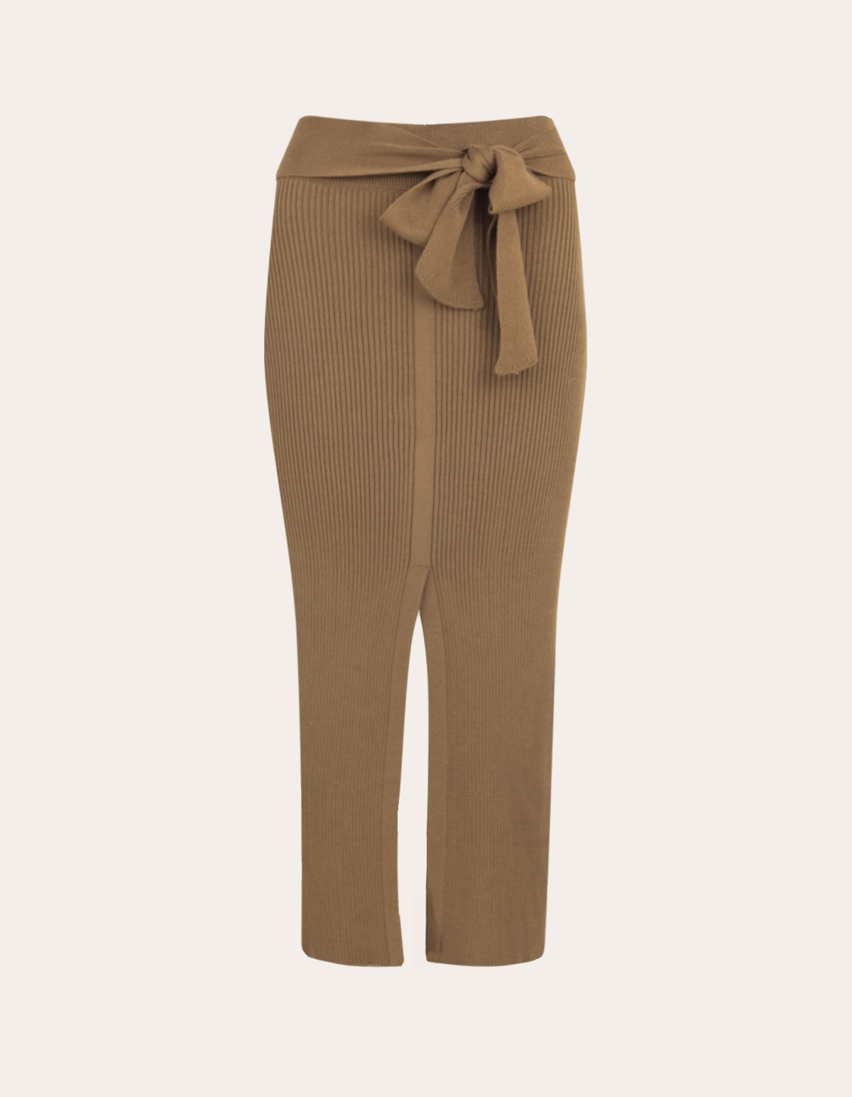Saia midi tricot com fenda e faixa
